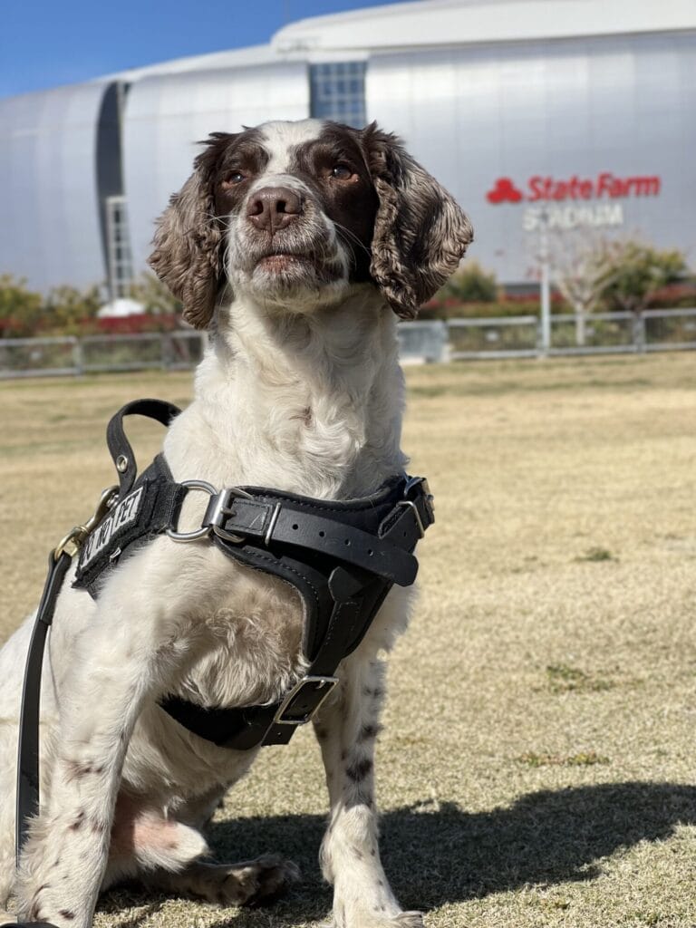 Alfie has been assigned to the Portland Police Department in Portland Maine where he worked as an Explosive Detection Canine for four years. While there he spent the majority of his working career at the Portland International Jetport safeguarding passengers through searches and deterrent activity. He also worked in other mass transit areas such as the train/bus transit options of the Portland Transportation Center, and the vessel transit option of Casco Bay Lines. Additionally, he was responsible for responding to various explosive threats within the area, including threats to schools and government buildings. Additionally, he had the fortunate opportunity to participate in deterrent activities at the 2023 Super Bowl. When not at work Alfie enjoys a good cuddle. Don’t let his mellow side fool you though, he has plenty of energy to still spare, as he ventures out into the woods for a good romp.