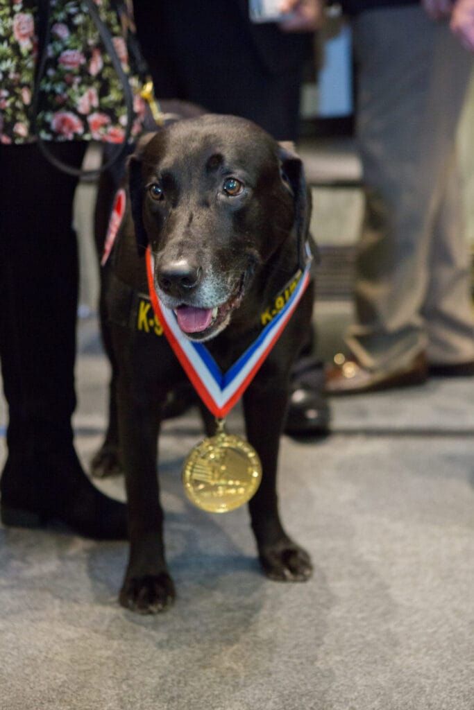 Alphie worked with the Marines in Afghanistan from 2012-2014. He then was deployed to Lackland AFB in San Antonio to be trained for Passenger Screening Explosive Detection for the TSA. I trained with him in 2014 and we continued to work with me until his retirement in 2019. We traveled to many cities in the US including Seattle, Denver, New York, Orlando, Nashville, Tampa, Chicago while being deployed from our home airport in Fort Myers, FL where we currently reside. He has spent his time after retiring eating and swimming and laying around! Well deserved! His favorite toys are tennis ball and kongs and his favorite food is cheese.