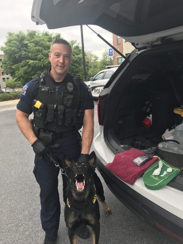 Axl is a German Shepard who came to the Winchester Police Dept. in February 2018 from Hungary. Axl was trained in patrol work and narcotics detection. Axl excelled in all aspects of his training which led him to very effective when it came time to work. Axl was always very focused and always ready to go at a moment’s notice. Axl especially enjoyed tracking, he took to it naturally and was proven on the street when it came to locating suspects. The last track he ran was over a mile, locating the suspects from a burglary. Since retirement, Axl has been relaxing and he chases his kong around now for entertainment. Axl remains a loyal companion who now has the freedom to just be a dog.