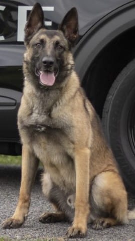 Bear is a 5 year old Malinois and German Sheperd mix. Prior to retirement he was certified in both Narcotics and Patrol tactics through the state of Ohio. Bear had over 50 deployments and contributed to numerous arrests throughout his career. He currently resides at home with his handler in Northeast Ohio. Bear loves the snow and his favorite activity is tug-of-war. When not outside, Bear enjoys rolling around in circles on the carpet and chewing his Kong toys. Bear is a high energy dog that enjoys consistent exercise and a steady routine. He is a very resilient dog and loves his family more than anything!