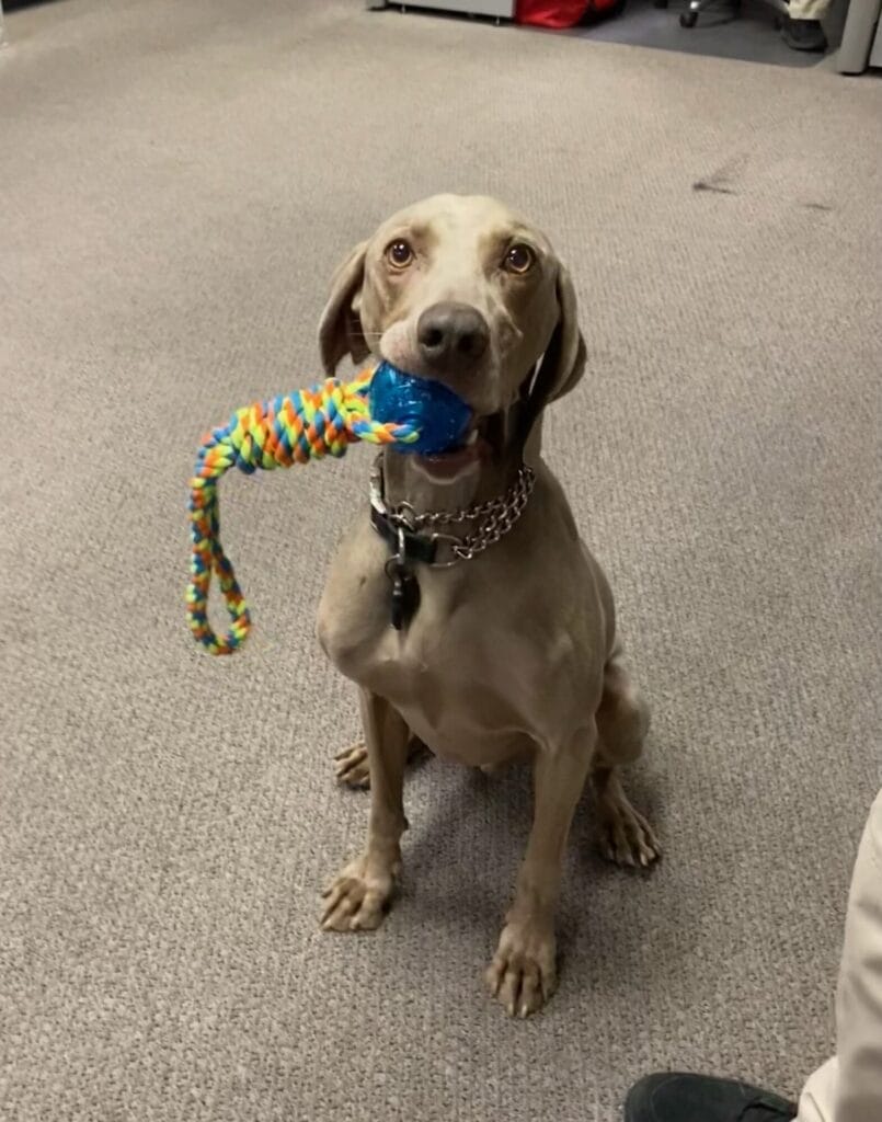 Ben-Bennett is a high drive Weimaraner specializing in explosives detection. He is trained to locate both stationary and moving threats via vapor wakes. Ben primarily worked out of the Harry Reid International Airport (LAS) and has supported many major events such as super bowls, F1, to name a few. In 2021, he was part of a multi-agency operation at the Philadelphia airport screening large number of luggage, equipment and refugees coming in from Afghanistan. Other places that Ben has traveled include Portland OR, Reno NV, Philadelphia PA, Delaware and New Jersey.