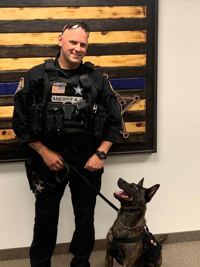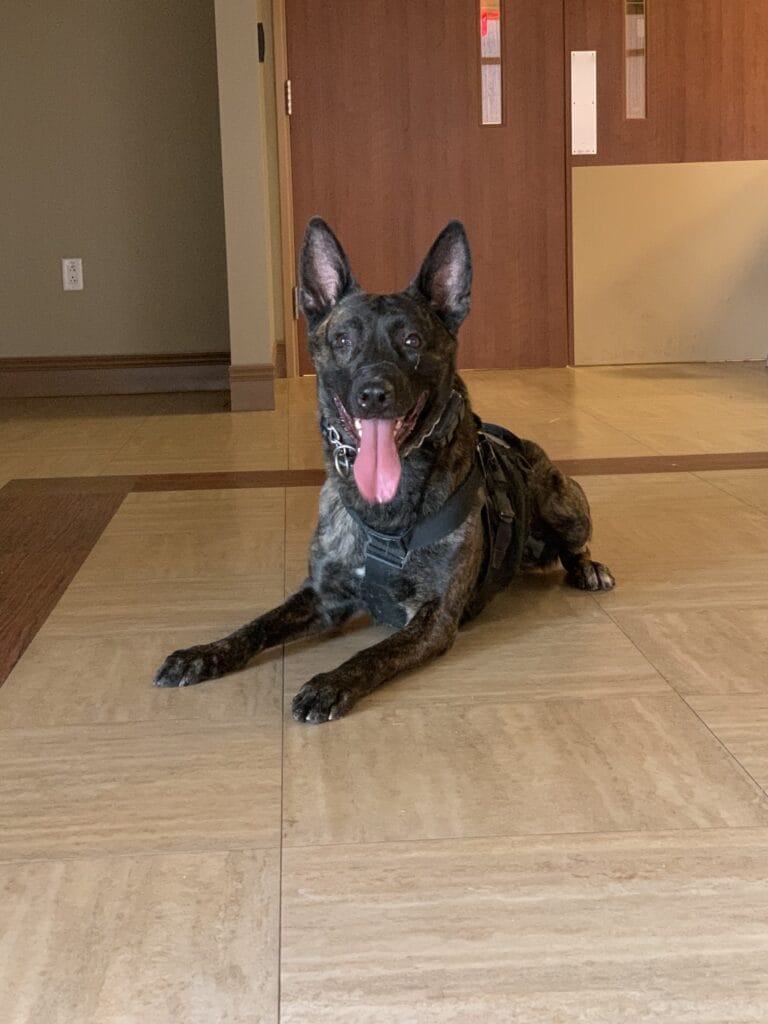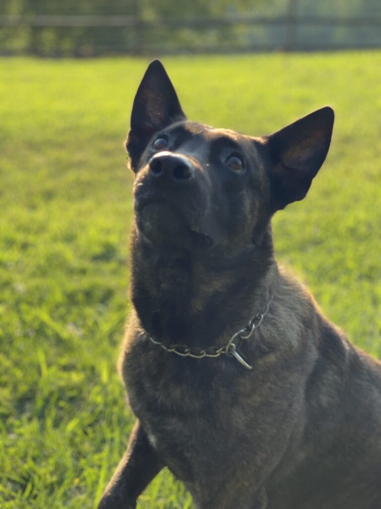 Bryson and I were paired in October of 2018. He was my first dog and I couldn’t have asked for a better first partner. Bryson is a handful very hard working and loves his job maybe a little too much. Bryson went through a 6 month k9 school with me where we learned patrol work and narcotics detection. He worked the road with me for 4 years before he was retired. Durning his time he had multiple finds of narcotics and assisted with taking multiple people in to custody. In his down time while he was in service we spent a lot of time playing games that worked on his working skills but in a fun way, things like hiding his toy and having him hunt for it, or just simply playing fetch, he also loves swinging so I took him to the the river a lot. In his retirement KONG IS LIFE he goes no where with out that thing. We play fetch a few times a day and we go to the river often for him to swim. He gets along well with my new working dog, Boone, and they run around the back yard a lot as well.