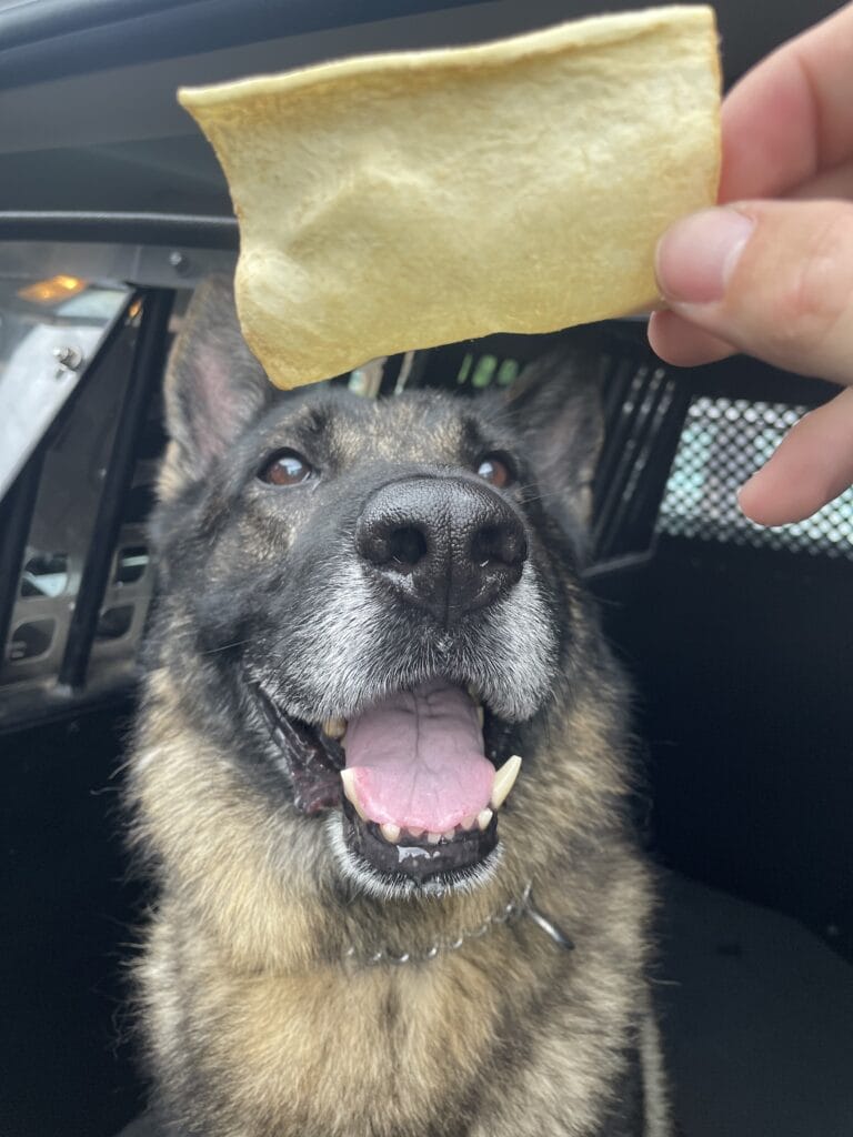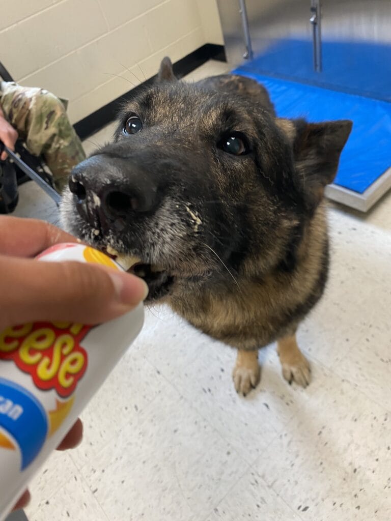 My name is Buddy! I am a retired military working dog based Fort Myer. I served 10 years in the US Army. I was on two deployments, first in Iraq for 10 months in 2018, and then in Egypt for 1 year in 2021. I have worked with some pretty cool people and cool missions, including Secret Service on POTUS and VPOTUS missions, and providing force protection on Fort Myer. My favorite treats are Milk Bones, any cheese that exists, and peanut butter. My dad takes me on a lot of trips on our down time, like camping on Shenandoah, retirement trips to the zoo (the seal pup doesn’t like me there), and plays fetch with me everyday at the dog park. My most absolutely favorite activity is to sleep, I’m quite a lazy man now (professional sleeper some might say). I spend most of my days with my giant Kong, and a dinosaur plush toy named Timmy (who is missing and arm and a leg at the moment). But I love retirement life, and love my new home with my dad and all his friends.