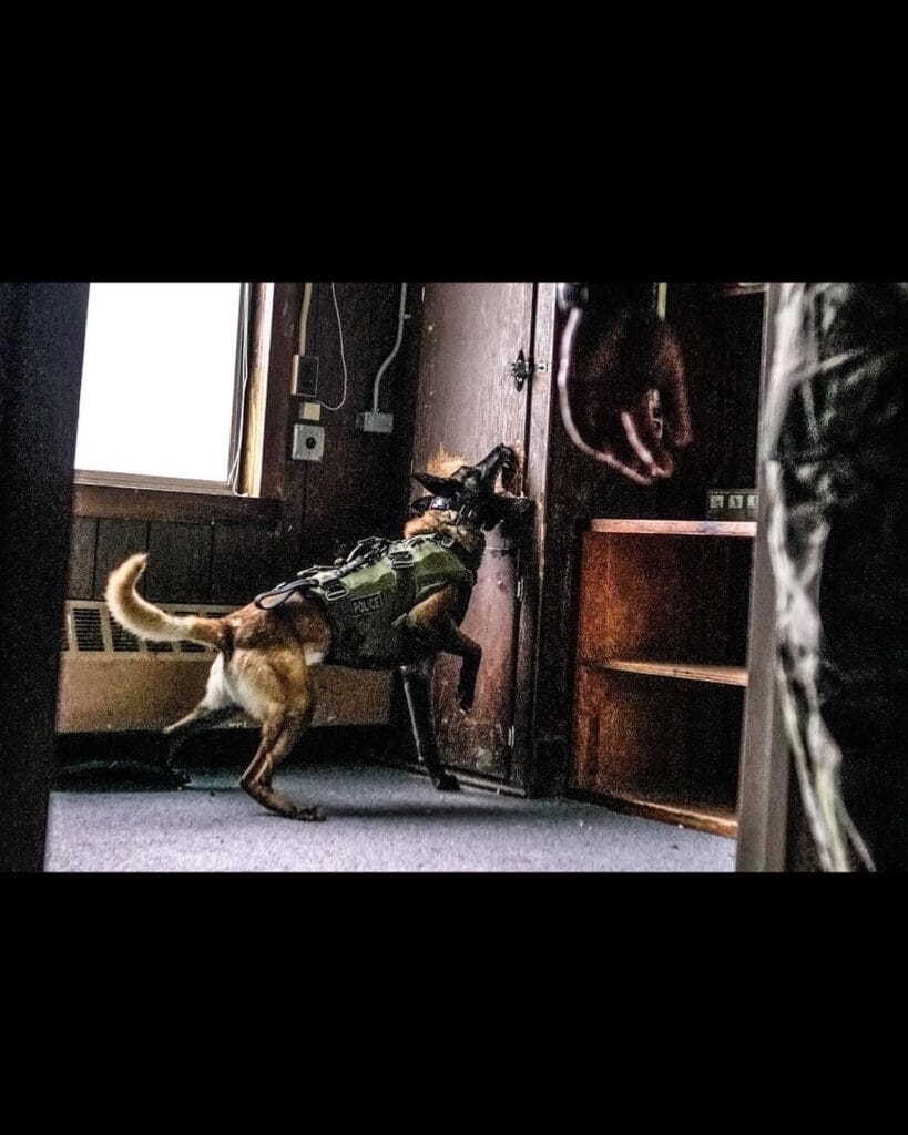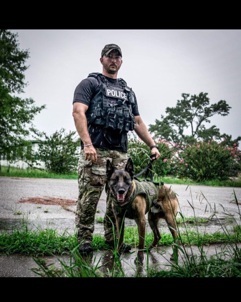 Cash has been a dual purpose narcotics dog with me since June 2014. He loves building searches and working with swat more than anything. And as fierce as he is, he has no concept of personal space and will climb in your lap if you let him