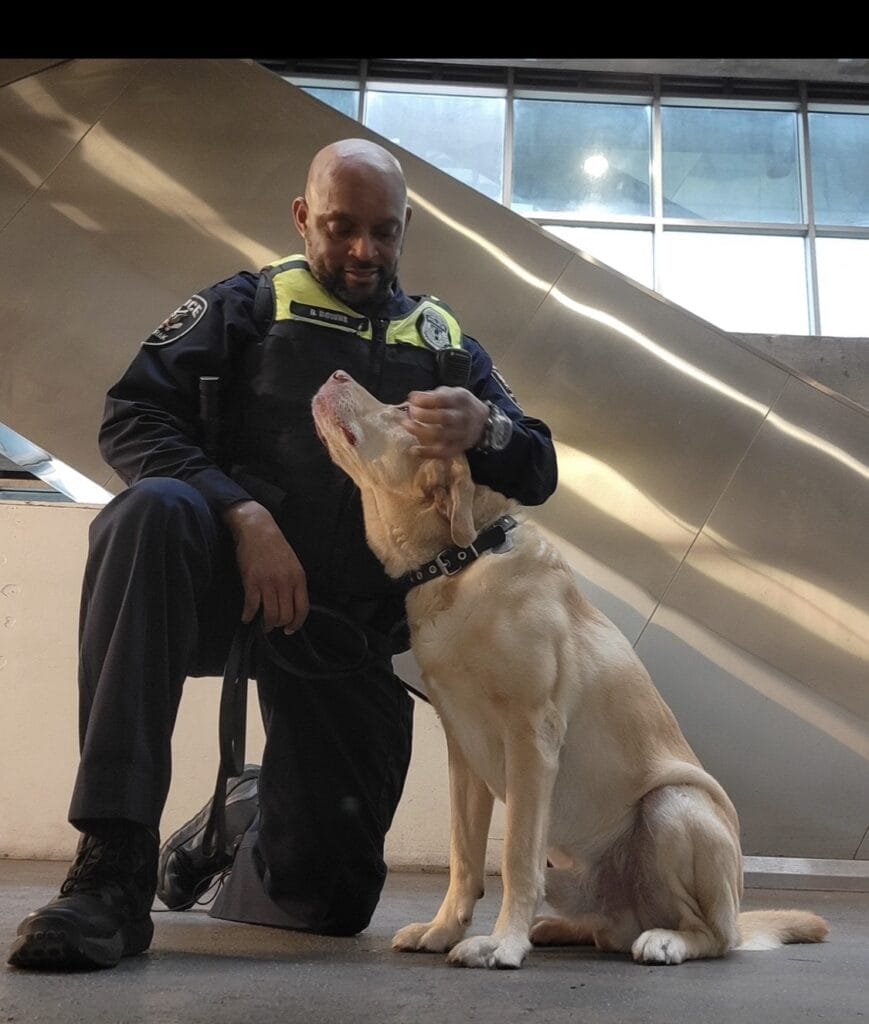 Cortes was born in Columbia South America. We trained together in Aniston Alabama when he was 18 months old. We worked in Amtrak’s Baltimore Penn Station and Washington Union Station until his retirement. He’s traveled to Philadelphia, PA and New York, New York for work. His favorite pass time is chasing a ball and fetching it back to me.