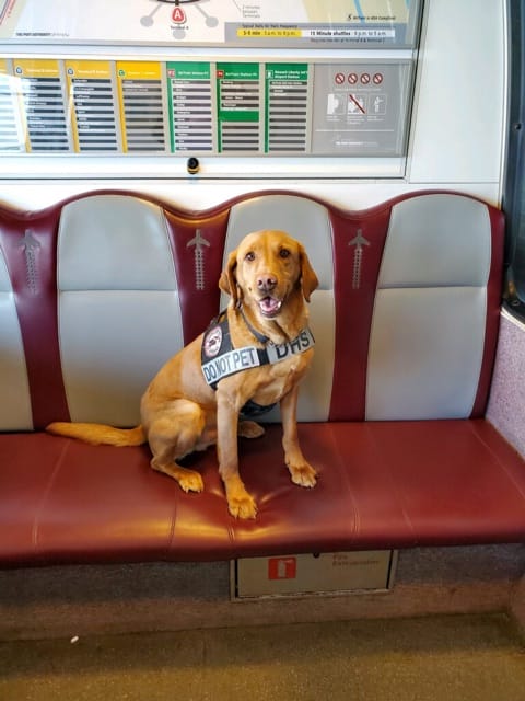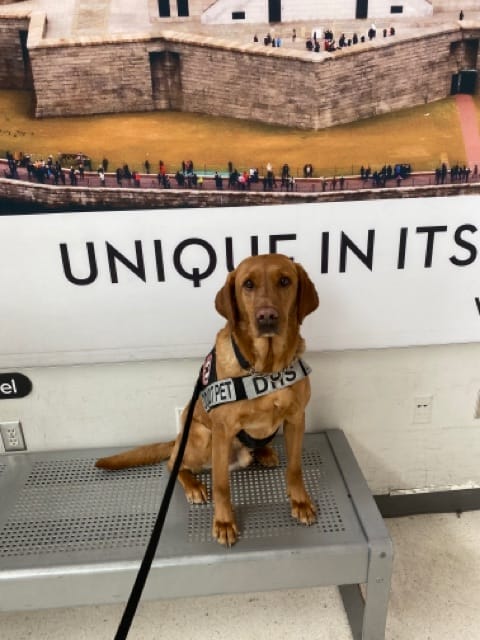 Derby had prior handlers before I was lucky to have him assigned to me. He is a Fox Red Labrador Retriever with the sweetest disposition. He loves spending time with my kids and his K9 siblings(1 also retired K9 and my new partner). He just wants to be with people at all times and loves meeting new people. His favorite food is bananas and I swear he can hear you peeling one open from rooms away. His favorite game is fetch and while we were working he loved going to presentations and outreach assignments.