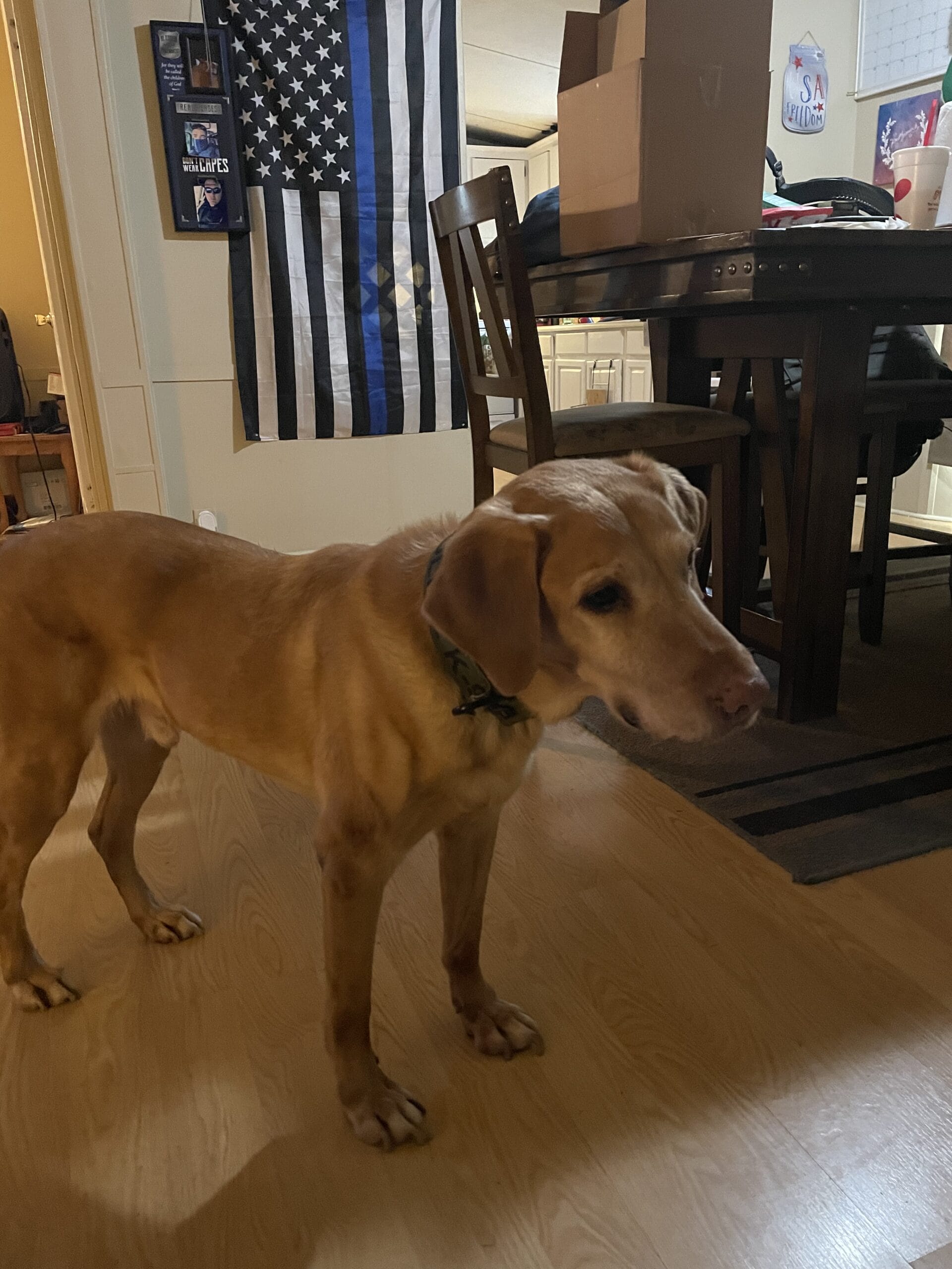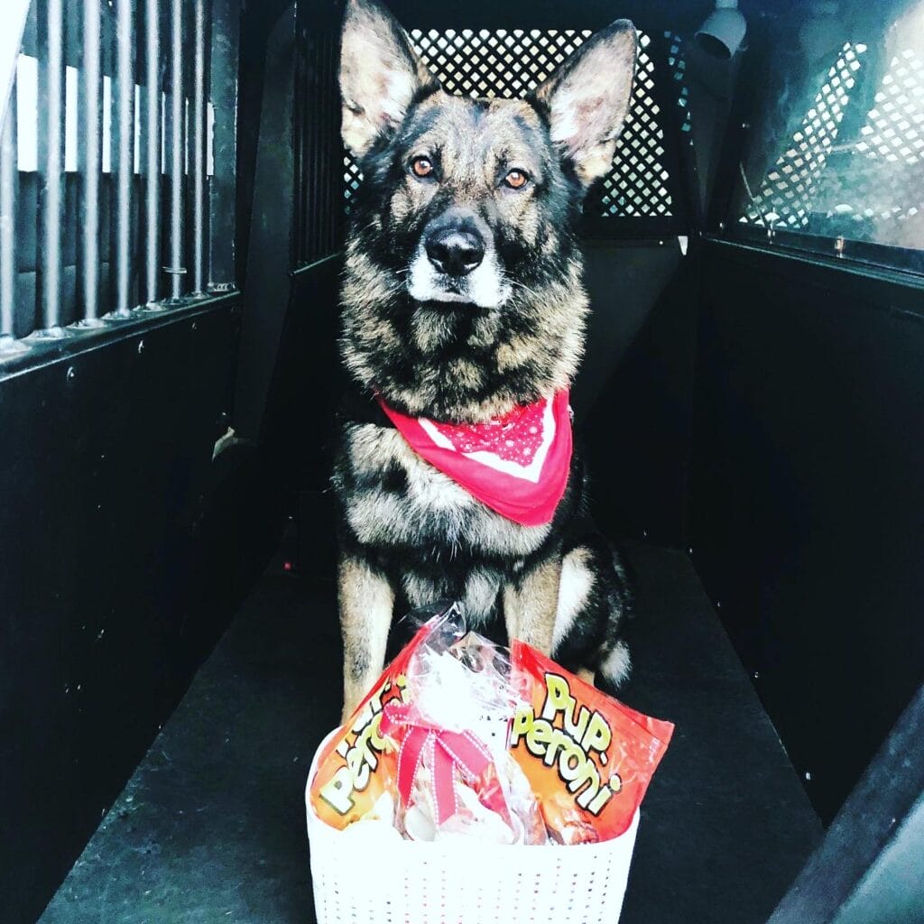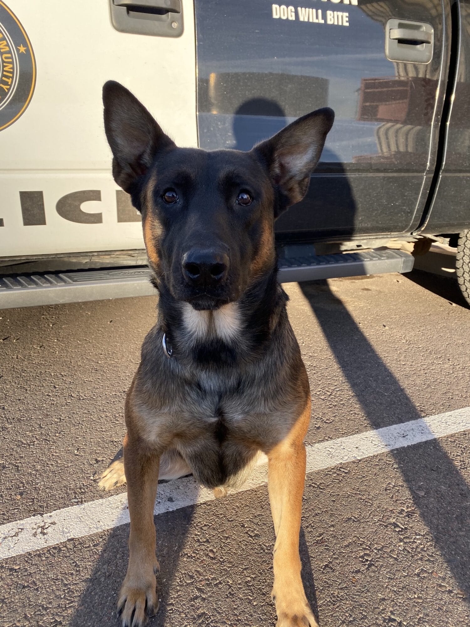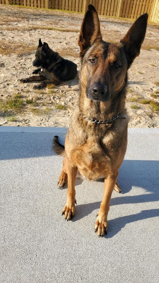 K9 Diablo started working in February of 2013 and was trained in narcotics detection, tracking, & patrol work. Diablo was affectionately nicknamed Dee Dee and his handler only uses his full name when he’s in trouble! Diablo was great at tracking and the majority of his apprehensions were through tracking. Diablo is a pretty serious canine but has a soft spot for small animals. Since retirement, Diablo has traveled to the mountains of NC and did a few easy trails. He lives at the beach but hates swimming! Diablo had a hip replacement and still suffers from fibrotic myopathy. He loves going to physical therapy (mainly for the cookies) but sometimes for the attention too. His favorite downtime activities include chewing on ALL the toys, playing with his Labrador “sister”, talking junk to the new K9, Dex, and pushing toys under the couch for his mom & dad to get!
