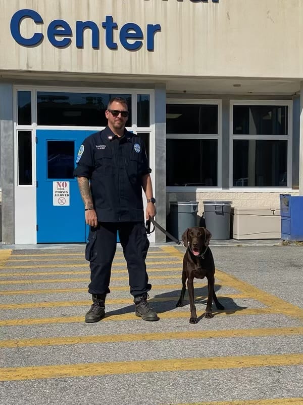 He was a Narcotics Detection K9 for the Virginia Department of Corrections. During his service he had multiple drug finds. He has travel to various correctional institutions in the state of Virginia and assisted with many special operations in the department. His favorite treats are green bell peppers, and he loves running outside and playing fetch.