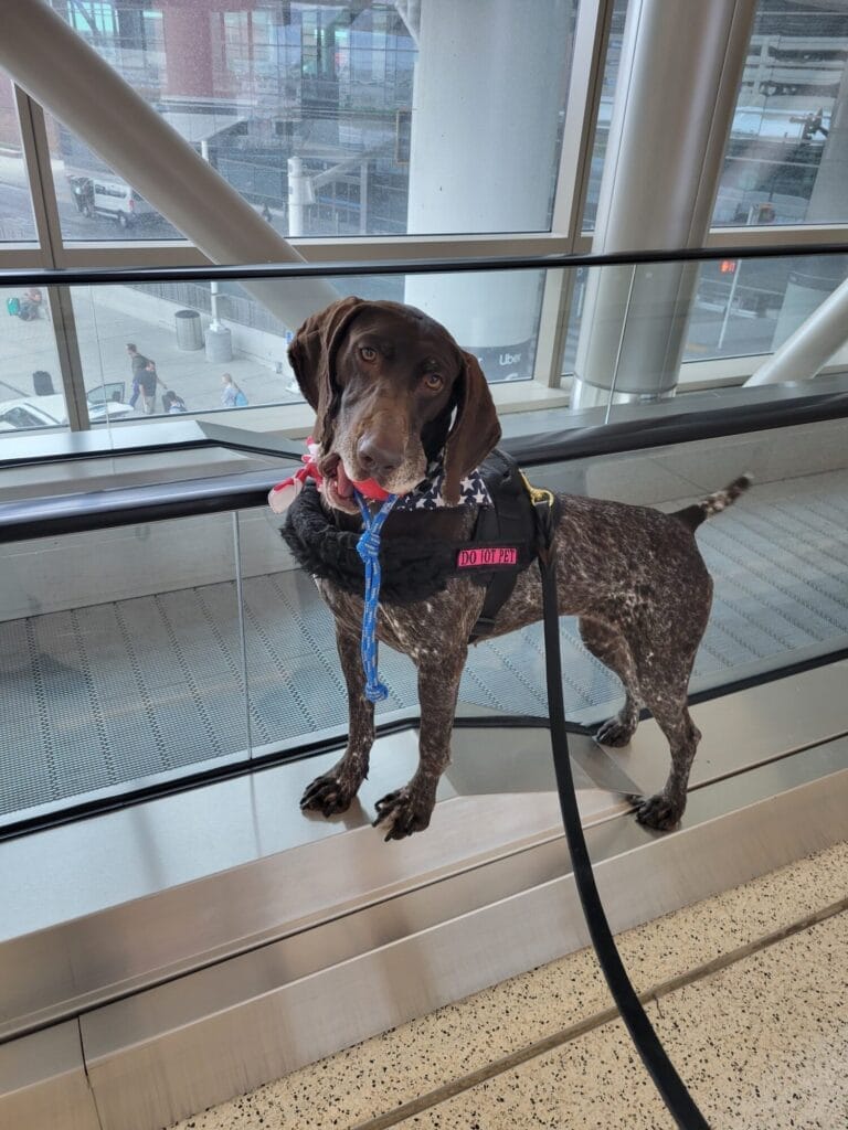 Eszter was a dedicated explosives detection canine for TSA whose career has spanned some of the nation’s busiest airports, serving with unwavering focus, drive, and heart. Eszter began her journey at Harry Reid International Airport in Las Vegas, Nevada where she spend a year honing her skills in a fast-paced, high-volume environment. There, Eszter proved herself adaptable and reliable, confidently working amid constant crowds, noise, and complex operational demands. Eszter continued her career at Louis Armstrong New Orleans International Airport where she served for another year. In New Orleans, she demonstrated exceptional consistency and professionalism while working in a dynamic airport known for its unique layout and nonstop passenger flow. Her performance reflected not only her strong training foundation but also her ability to remain steady and focused in diverse operational settings. Eszter concluded her working career at Salt Lake City International Airport, where she finished with the same dedication and excellence that defined her from the start. Eszter was deployed to IAH and DEN airports to help during high peak seasons. After a few short years of faithful service, Eszter was honorably retired due to arthritis, allowing her to step away from operational work while prioritizing her long-term comfort and wee-being.