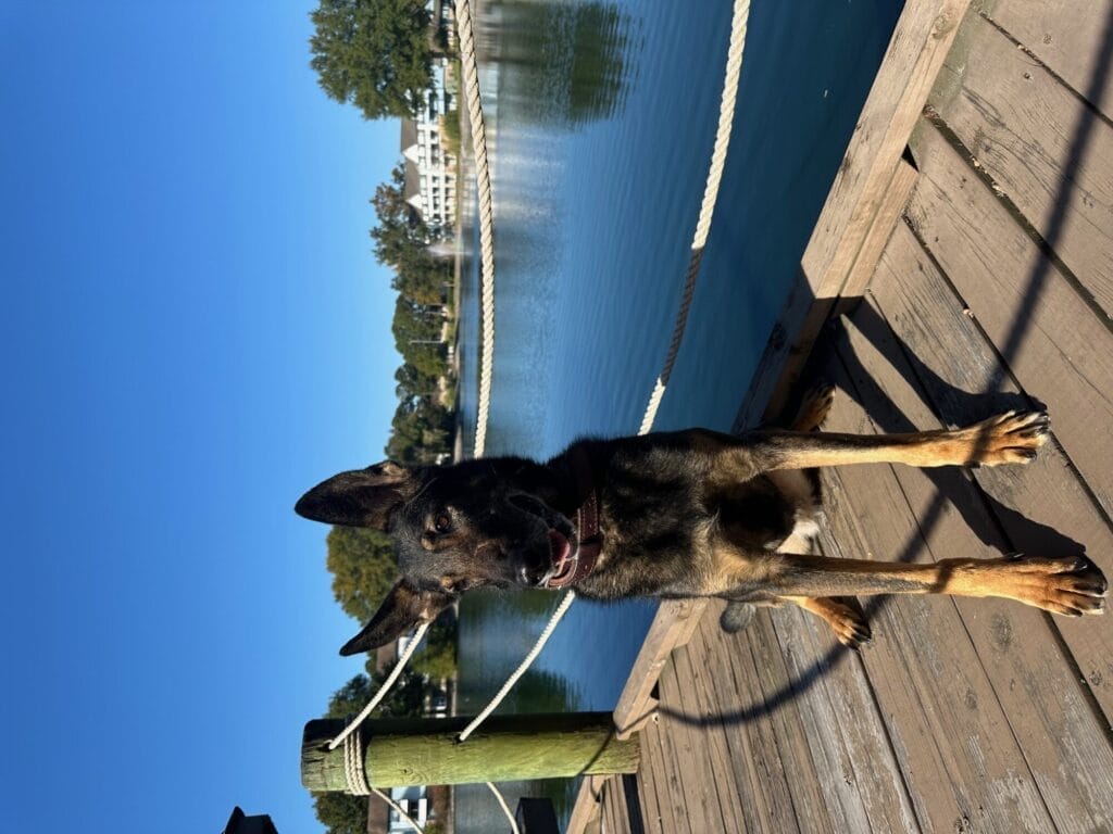 Gina spent much of her early career apart of the Navy’s “Puppy Program” in Lackland Air Force Base. After her time there, she transferred to NAVSTA Rota, Spain for the remainder of her career. In her time there, she deployed to Africa two times with different handlers, and assisted in various tasking’s such as NATO Summits ensuring the safety of those in attendance. Gina loves bacon flavored treats and attention from those around her! She still tries to move like a younger pup at times, running up to people with her toy and dropping it to play fetch!