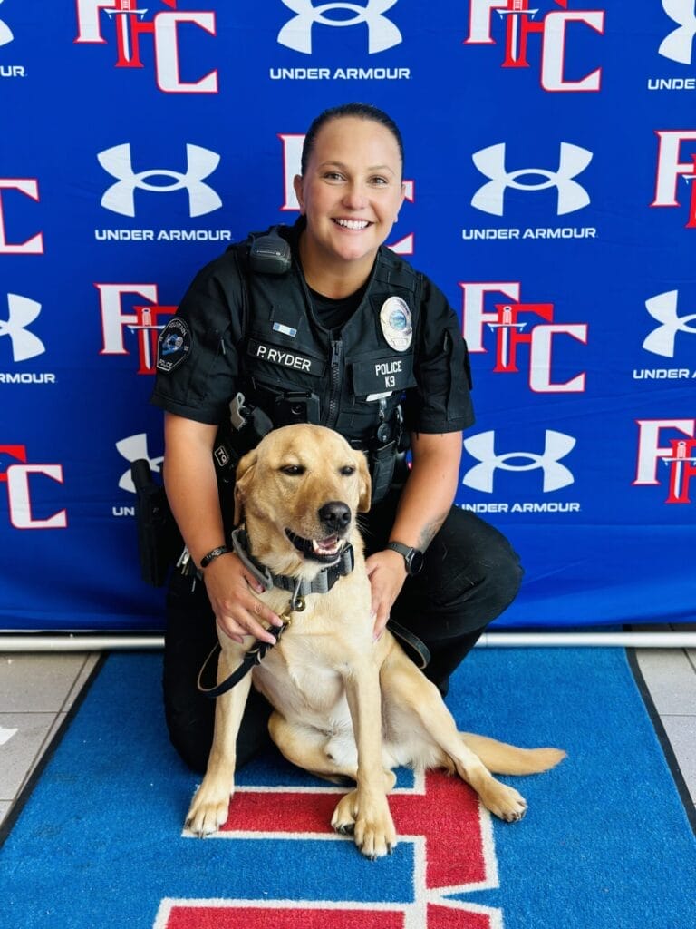 Goose started out his career as a drug canine on patrol for the Fountain Police Department from November 2020. The State of Colorado then legalized psilocybin mushrooms (shrooms) and Goose was unable to work as a drug detection dog and was retired from parol in November of 2023. Goose was repurposed over to our School Resource Officer Unit (SRO) as a District 8 drug detection canine and mostly worked at Fountain-Fort Carson High School before he retired in June of 2025. Goose’s favorite toy is any type of ball but tennis balls are is absolute favorite. He doesn’t destroy them, he just likes to carry them around in his mouth and proudly show it off. Goose loves treats and is not picky at all when it comes to food! He absolutely loves to work but he also loves attention and likes to be pet/belly rubs. He has really high expectations in retirement after being loved on by thousands of kids every for his last two years of work. If Goose isn’t sleeping in his downtime, he likes to follow mom everywhere she goes, make his baby brother laugh, chase squirrels outside in his backyard, or play fetch.