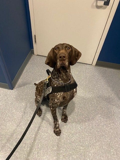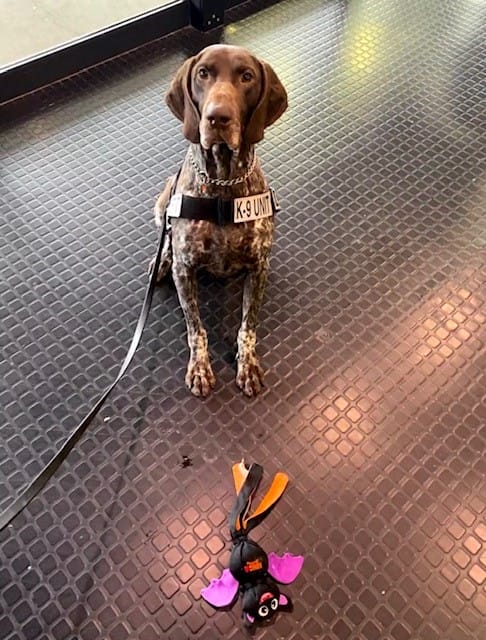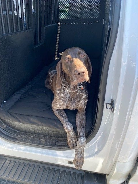 Hudini is a 6 year old GSP and retired Explosive detection canine from Newark airport. He loves to work and his favorite reward is a Kong Wubba. Hudini also love hunting birds and anything small that moves.