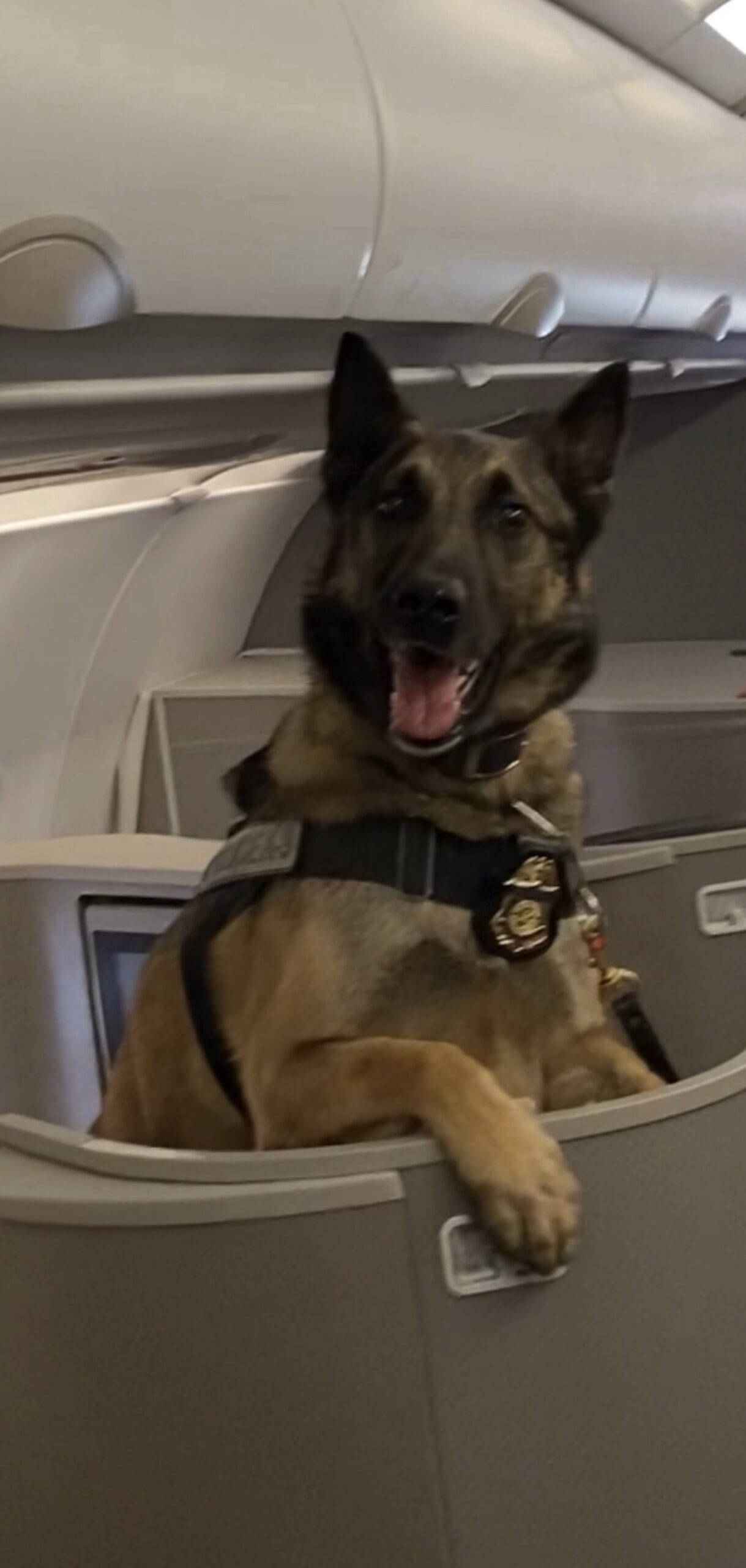 Jim was originally assigned to LAX prior to moving to San Jose to be assigned to his forever home. K9 worked at San Jose Mineta International airport screening passengers for Explosives. Jim moved to Seattle in 2021 where he continued to perform. Jim retired in 2022.