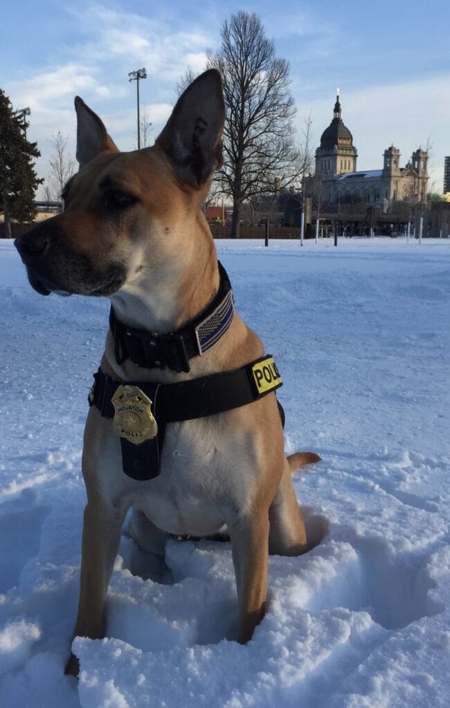 Jockey is an active Belgian Malinois mix who was retired in 2022 after six years of active service with the Houston Police Department Explosives Detection Canine Unit. Jockey was retired after bone cancer was found in her left front leg and her leg was amputated to save her life. She has worked Super Bowls in Houston, Minneapolis and Tampa, and 2 World Series. jockey has also provided dignitary protection for numerous celebrities, prominent sports figures, and politicians; including five Presidents of the United States.