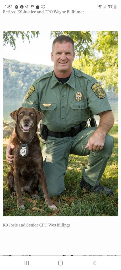K9 Josie was adopted from the Portsmouth Virginia Animal Control Facility in February of 2012. K9 Josie’s original name from the pound was Berrymore. I thought it was more appropriate as she was going to be working in Southwest Virginia to make her name Josie. K9 Josie was immediately started on training and certified in Spring of 2012 at less than a year old. K9 Josie continued her successful career for over 8 years of Conservation Police K9 work. Josie was certified on Tracking, Article Searches, and Wildlife and Fish Meat Detection. K9 Josie was credited for over 400 successful cases during her career. She now free roams as a “yard dog” on 15 acres of property in Wythe County, Virginia.
