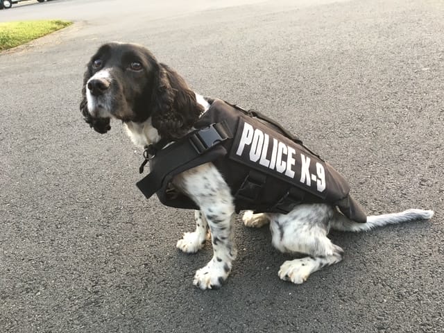 Jude has worked in Herndon during his career along side myself on patrol. Jude and I went through CIA K9 Training school and Certified with CIA, ATF and USPCA. Jude and I continued to train with CIA for approximately 10 years and he is trained to be food reward. Jude has been used to search unattended packages, building searches such as school bomb threats, car searches for explosives and weapons and outdoor searches for bullet casings, explosives and weapons. He was able to locate a hand gun during a search thrown by a suspect in to heavy brush along side W&OD Trail in Herndon. He has done sweeps and searches for surrounding counties. Including Herndon Festival, Fairfax Fair, Loudoun fair. Jude and I have attended numerous community events and career days due to him being very friendly with children. He has traveled to Raleigh, NC to compete in USPCA National Detector Field Trials. He placed first on package searches and fourth place overall. Jude enjoys going boating and loves to swim in the Potomac river. Many times he has brough us back dead fish floating in the river. He likes to chase squirrels, birds and rabbits. He also enjoys going on hikes through the woods.