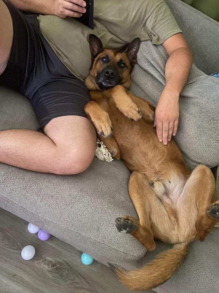 Kai served from 2019-2023 at JBSA Lackland Air Force Base. During his time, he assisted in training new and old handlers in basic as well as advanced training techniques. He was able to teach new handlers new things and learned a few himself. Since retirement, he loves playing with his brother and sisters and has adjusted well to life on the couch. He prefers soft treats and loves to cuddle with his teddy bear. The one thing he enjoys the most about being retired is AC and all the love and attention he gets.