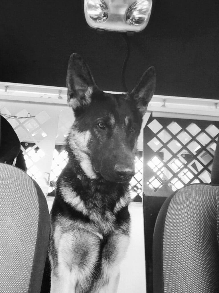 K9 Kane is a pure bred German Shepherd, who was purchased from a breeder in Wolcott, VT. Kane entered the O’Neill family when he was just three months old. He began his career in law enforcement when he was 10 months old by attending the Canine Patrol School, a four-month long training program which included obedience, tracking, handler protection, evidence recovery, building searches and more. After graduating from patrol school, he attended drug detection school for an additional two weeks, where he was trained in detecting; Marijuana, Hashish, Cocaine, Heroin, Methamphetamine, Ecstasy, and Crack Cocaine. Kane worked the road with Officer O’Neill for the next seven years, where he proved his ability to locate drugs, drug money, suspects and missing people in Vergennes and surrounding communities. Kane’s sweet demeanor made him excel with public relations, and is loved by many. He always enjoyed his favorite treats at work, which were peppermint life savers (which made him drool as they were being unwrapped).Kane also enjoys hiking, going for rides with his head out the window, and lots of play time with his ball. Kane retired on 02/01/2022, and has since been enjoying his retirement, relaxing on the couch, ever ready for his Kong ball to be thrown. Despite his recent cancer diagnosis, Kane continues to be as energetic and happy as ever.