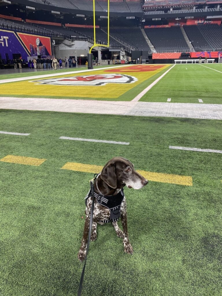 K9 Kina has worked 4 Superbowls, The Popes visit to Philadelphia, The Democtratic National Convention and a Presidential Inauguration, a College Footbal National Championship Game, and theLast Vegas F1 Granprix.