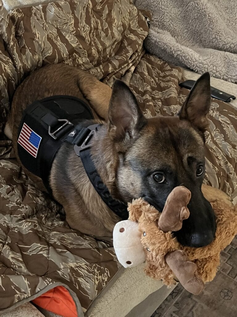 Kobus was a multipurpose canine asssigned to the 75th Ranger Regiment. It’s a tough road becoming an MPC, and unfortunately Kobus suffered some mental trauma throughout this process, eventually leading to is retirement. He’s still a jumpy fellow and misses working with his friends in Savannah, Ga, but he’s enjoying his post-army life and recovering well. His favorite hobbies include chasing his beloved chuck it balls, annoying his german shepherd Indy, and being bossed around by his bulldog Iris. He’s a picky one with food, although Bil Jac seems to do the trick.