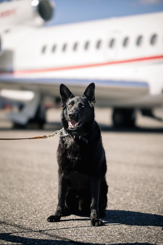 K9 Kubo is a handsome, sweet, loving boy who just turned 10 years old and is loving every bit of retirement. K9 Kubo was a currency/firearm dog at JFK International Airport. Kubo loves any and all kinds of treats, he does not discriminate. His all-time favorite being food thrown off the highchair from the baby. In his downtime, K9 Kubo loves playing fetch outside with his variety of balls, loves long walks, playing in the snow, sleeping, snuggling and car rides.