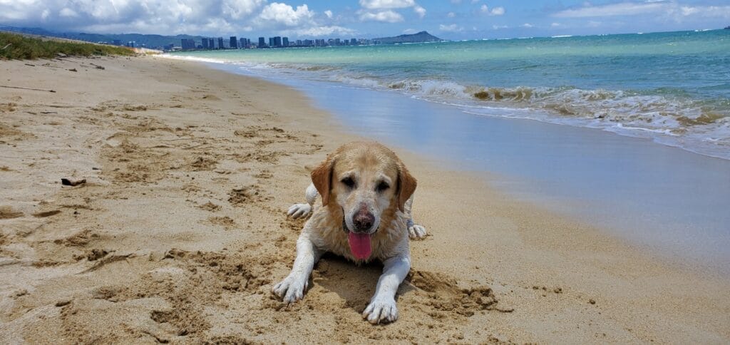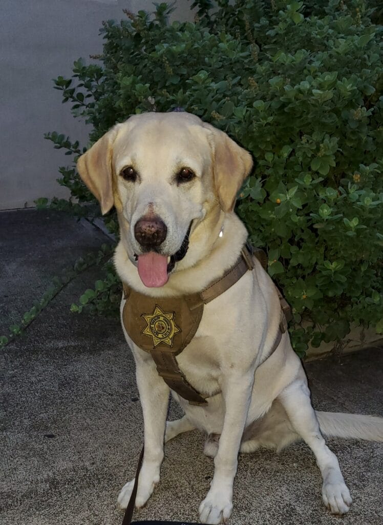 Hi, I’m LLynch a yellow Labrador Retriever that was trained in explosive detection at Lackland Air Force Base TX. I was name after a 911 victim Terence Lynch (Pentagon) part of TSA’s puppy program. In 2013 my life changed when I met my handler. We trained together for ten weeks learning our strengths and weaknesses. In August 2013 we graduated TSA’s explosive detection and became a K9 team. My assignment took me to Honolulu, Hawaii. I had a good career, I worked as a Sheriff K9 at the Daniel K. Inouye Honolulu International Airport searching luggage, mail, vehicles, Aircrafts and terminals. I’ve searched for former Presidents and Foreign Leaders, NFL PRO Bowl, NBA games and Honolulu Marathon to name a few. Many of my peers considered me a high drive canine, “slow” was not in my vocabulary. I was told many times that if I could drive my handler would be out of a job. I would tell them I still need someone to pick up my poop. I had to retire because my body let me down. I would hide the pain just to search and get my reward but, time caught up I couldn’t recover from my injuries. When I worked I gave it my all. In my spare time I was able to train my handler to take me on walks every day and twice on my days off, rain or shine. I love to play ball at the beach or home, I hold on to the ball and make my handler beg for it. This would drive him crazy, but I love it. My handler sets up a kiddie pool in the yard I love to jump in and splash around. I enjoy helping in gardening, I pull down pesky banana trees. My handler just cuts the leaves, but I show him how to pull down the tree. My favorite treat is a white bone (Checkups dental chew), I just can’t get enough of them. I wish I was still able go to work with my handler every day, I wait at the door hoping.