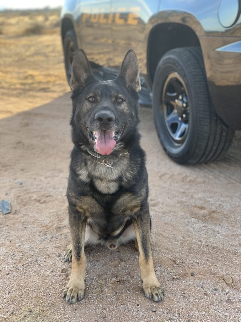 Lobo aka Max is German Shepherd, born on March 2, 2015 in Germany. He weighs 75 lbs and worked with me his entire career. Lobo served the City of Casa Grande Police Department from November 2, 2017 until his official retirement date of March 14, 2021. Lobo was a dual purpose K9, meaning he can work patrol duties such as searching for suspects and weapons and identify and discover illegal narcotics. During Lobo’s career, he has been responsible for approximately 400 team arrests. Lobo was a great Narcotics dog and responsible for many narcotic seizures. Lobo was responsible for multiple apprehensions. On one occasion, Lobo located and apprehended a barricaded subject hiding in a residence. Lobo has located several firearms discarded by fleeing suspects, all in separate incidents. On another occasion, Lobo located a firearm that was discarded by a fleeing suspect who had pointed it at one of our own Police Officers during a traffic stop.
