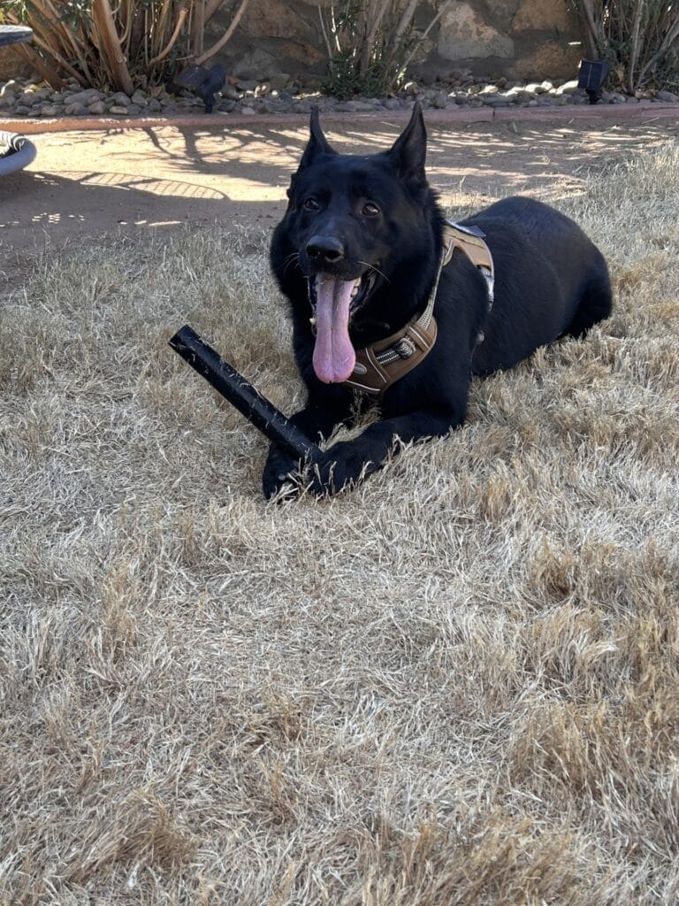 Lobo is a retired k9 narcotic for CBP. Lobo has caught numerous loads in the Santa Teresa Port of Entry. Lobo no enjoys retirement going for walks, dips in the pool and rolling around in the grass