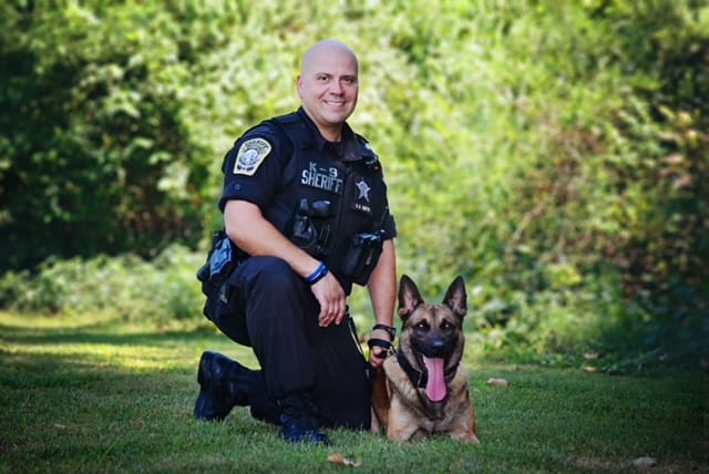 My partner Lobo is a 6 year old Belgium Malinois that has retired unexpectedly from an injury resulting during training. During the short time of Lobo’s service he has countless narcotics arrests and property seizures resulting in paying for himself within the first week of his service. Lobo also has made apprehensions of fleeing suspects and played a role in charges against felons possessing firearms. Lobo loves his four mini-Australian Shepherd sisters and chewing on his favorite ball.