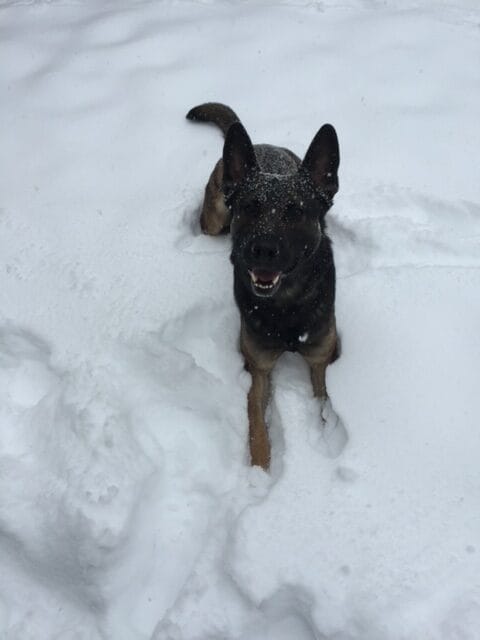 Canine Lucas was born in Slovenia and made his way to the U.S. in 2012 at the age of one. He trained in Montgomery County, Maryland to do patrol work and explosive detection. During the winter months he enjoys running through the snow and catching snowballs. In his younger years, Canine Lucas looked forward to long runs in the park with his handler. He’s slowly settling into retirement but has not lost his high drive at all.