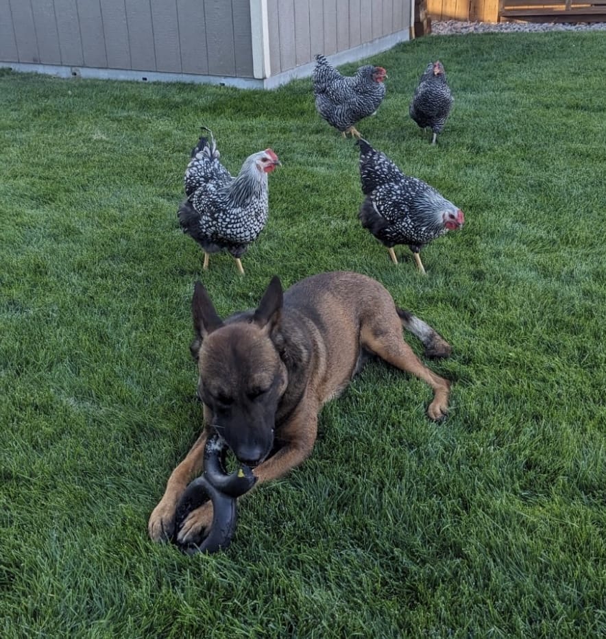 K9 Milo has worked in a variety of settings, showcasing impressive skills in narcotics detection, patrol, tracking and apprehension throughout Colorado Springs, CO. He absolutely loves all treats — from crunchy biscuits to soft chews to a nice juicy steak — but what really gets his tail wagging is a good neck scratch after a long day’s work. He thrives on praise, belly rubs, and a job well done. Off duty, K9 Milo is all about the good life. His favorite activities include rolling in the grass, playing endless games of fetch, and soaking up the sun. He enjoys relaxing in the yard with his brother — a goofy Labrador — and keeping a curious but gentle eye on the family chickens. Despite his tough exterior on the job, K9 Milo is a total softie at heart. Sun naps, ball time, and family moments are his happy place.