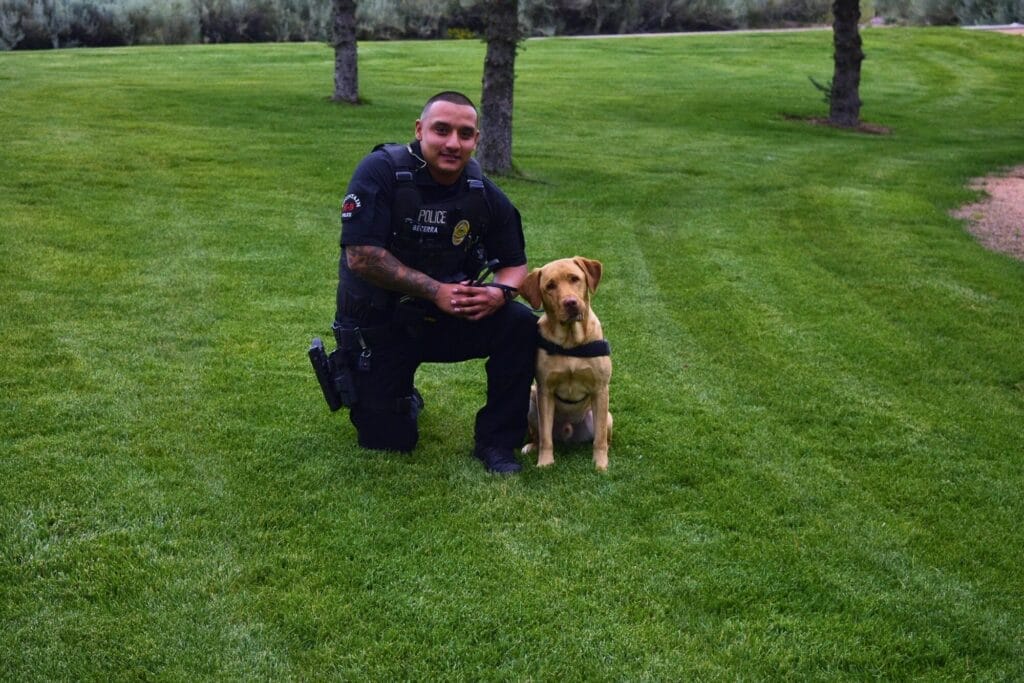 Moody became a member of the Fountain PD K9 program after flunking out of a service dog program, he made it as far as the final testing phase but was clearly to high drive to be a suitable service dog. Moody received a new job and a new name when he arrived in Colorado. He was named Luther, not a great fit, FPD and the city of Fountain took a vote, Maverick, the other K9 at the time was named Goose, or Moody in honor of FPD’s only fallen officer. Votes were cast and Moody was officially renamed. Training started and went great, Julian and Moody got certified in October of 2020. After training it took them awhile to find their groove as a team. Julian put in a lot of extra time and training to make Moody a solid drug dog, there were often days when Moody was reluctant to go to work, not wanting to leave his spot on the bed. Moody was officially retired in January of 2023 after mushrooms became legal in Colorado. We lost Julian to a line of duty death the following month. Our 3 year old son loves playing with his police dog, they take bad guys to jail together. Moody holds a special place in our family and our PD family and is a constant reminder of Julian’s passion for the K9 program. Since retirement Moody has enjoyed a life of leisure. He spends his days napping, cleaning up after our son, those are always the best treats, and going on walks, playing fetch, and swimming.