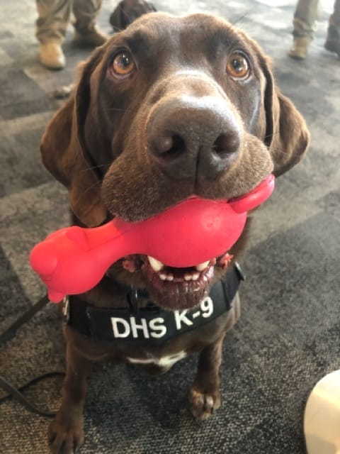 K-9 MOOSE (Brand T482) retired on April 8, 2021, at the age of 10 1/2. K-9 MOOSE trained at Auburn University and worked to provide world class security at the Austin Bergstrom International Airport in Austin, Texas, since 2012. During his career, the MOOSE provided support for special events, such as: (3) NFL Super Bowls, (2) NCAA Conference Final Four Championships, the Papal visit to DC, the DHS Secretary visit at the Texas-Mexico border, as well as assisting multiple Airports and Agencies on numerous occasions. One notable Agency was BORSTAR. The Border Patrol Search, Trauma, and Rescue Unit (BORSTAR) is a specialized unit of the United States Border Patrol trained in emergency search and rescue and medical response, to include the Working Dog. K-9 MOOSE enjoyed being a live participant for BORSTAR K-9 Medic Courses on many occasions. The MOOSE retired with his pack out of Marble Falls, Texas.