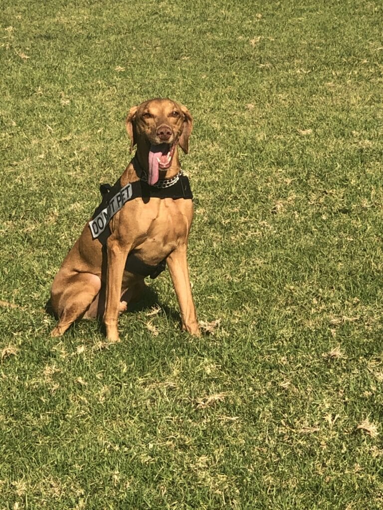 Odey X037 is a Hungarian Vizsla and worked as an explosive detection canine for DHS TSA for 7 1/2 years. Odey worked out of San Francisco, Phoenix, Orlando, and San Diego. Odey had an amazing nose for detecting explosives and won over hearts everywhere he went. Odey retired in May 2022 and has been loving his life with his family at home. Odey loves treats and his favorite reward, the yellow ball on a rope. Odey is truly a “Velcro” Vizsla and follows his handler everywhere.