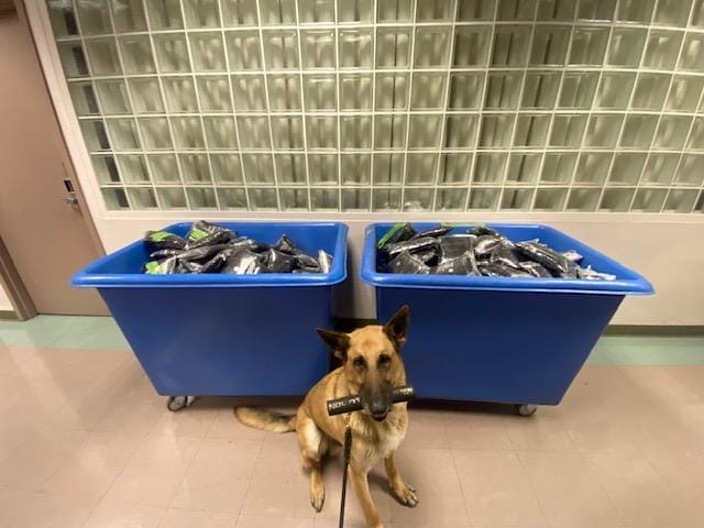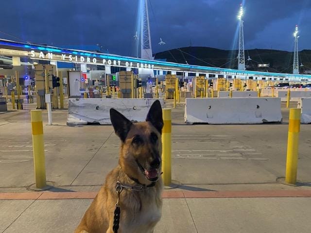 PIke is trained to find narcotics and concealed humans. His area that he was responsible for was the Seaport Port of Baltimore, Baltimore Washington International Airport and the Chesapeake waterways. He also supported other Federal Law Enforcement Agencies within the DMV surrounding areas with assistances of their search warrants. Pike and I have been temporary detailed to the Southern Land Border ports of San Ysidro and Otay Mesa for a total of 9 months. During one of those details, Pike located 775lbs (3,520,000 pills valued at $21 million dollars) of Fentanyl trying to be smuggled into the United States concealed in a shipment of food. Over Pike’s career he has screened and searched hundreds of thousands of people, luggage, air and sea freight, airplanes, vessels and other forms of transportation. since being retired, Pike loves to lay around, and people watch out the front door.