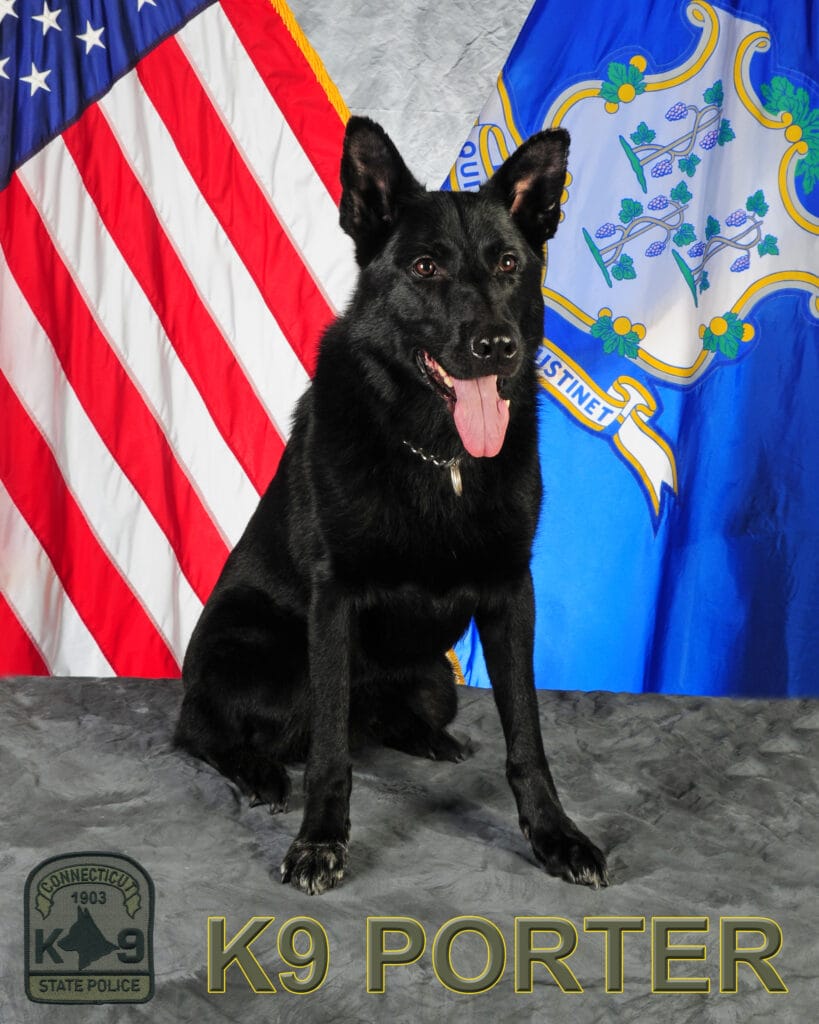 Handler: Matthew Warren Breed: German Shepherd DOB: 5/4/2012 Department: Connecticut State Police Function: Patrol, Search and Rescue, Cadaver, Water Recovery Years Worked: 1/2014 – 5/2021 K-9 Porter #9017 was born in May 2012 and was donated by the Fidelco Guiding Eyes Foundation to the CT State Police in January 2014. Trooper Warren trained K-9 Porter who graduated the Connecticut State Police K-9 Academy on 6/5/2014. K-9 Porter subsequently graduated the Connecticut State Police Search and Rescue Academy on 9/18/2014 and immediately impacted lives and families throughout the state. During K-9 Porter’s career, he was responsible for numerous lives saved, suspects tracked, located, and arrested, deceased bodies recovered, and evidence recovered for high profile cases within surrounding cities and towns. K-9 Porter was very sociable, engaged in community events and was adored by children and adults alike. K-9 Porter gave 7.5 years of service to the state of Connecticut, and retired due to age, previous injuries and Trooper Warren training and certifying Porter’s replacement K-9 Maxx #9003. K-9 Porter developed Degenerative Myelopathy shortly after retiring and has fought through a recent surgery for a ruptured tumor within his spleen. K-9 Porter is loved and supported by his family, friends fellow Troopers and Officers throughout the State of Connecticut.