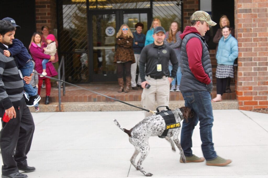 K9 Potyi worked at MSP airport in Minneapolis from 2016 to 2020. During that time, Potyi supported detection screening of Superbowl 52 and the NCAA Men’s Final 4 in 2019. Potyi has also attended training functions in Reno, NV and multiple popular destinations such as the Mall or America and the MN State Capitol.
