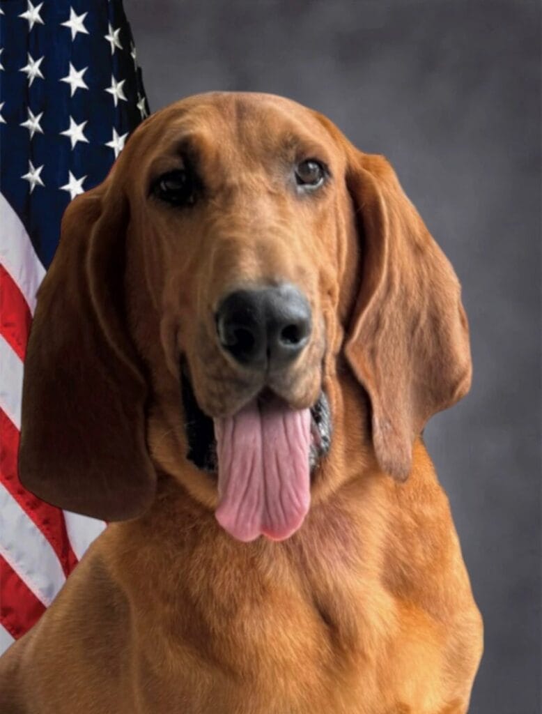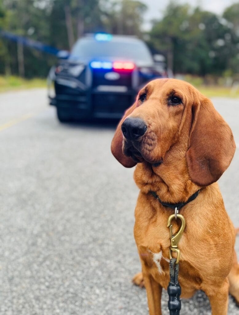 K9 Radar was trained and donated by Find-M’ Friends, and he began his career at my side as my very first K9 partner. From day one, we had plenty to figure out together. Radar was a handful—both at home and on the job. He had the energy and curiosity of a toddler, and I often felt like I was just trying to keep up. With time, I learned he had an incredible nose that I needed to trust. Radar never showed frustration and never quit; he simply loved to work. His style was slow, steady, and methodical, and no matter where the trail led, he was determined to follow it. Radar can sleep through anything and has a goofy, carefree personality that makes you wonder what is going on behind those eyes. But the moment his harness went on, he transforms—focused, driven, and ready for the job. Throughout his career, Radar attended multiple training seminars across Florida, South Carolina, and North Carolina, continually developing his skills and strengthening our partnership. Radar loves to lay around the yard, play with the family and chew anything he can get his mouth around. He’s a great boy and he retired with me as his one and only handler.