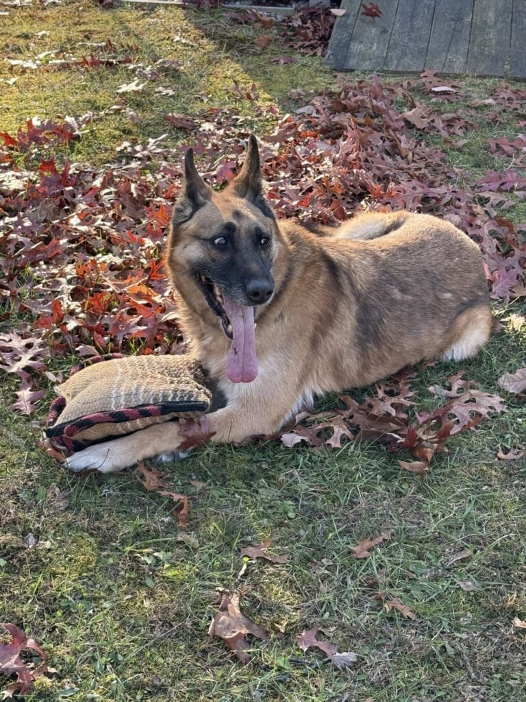 Recon worked in Camden City his entire career. He loved starting his work day, jumping in the police SUV and barking at everything that moved. While on duty when he did an exceptional job whether in patrol or narcotics, he’d get his ball and we’d play for a few minutes but then we’d go to Chick-fil-A where I’d treat him to waffle fries, his favorite treat. During downtime we’d play fetch which he loved.
