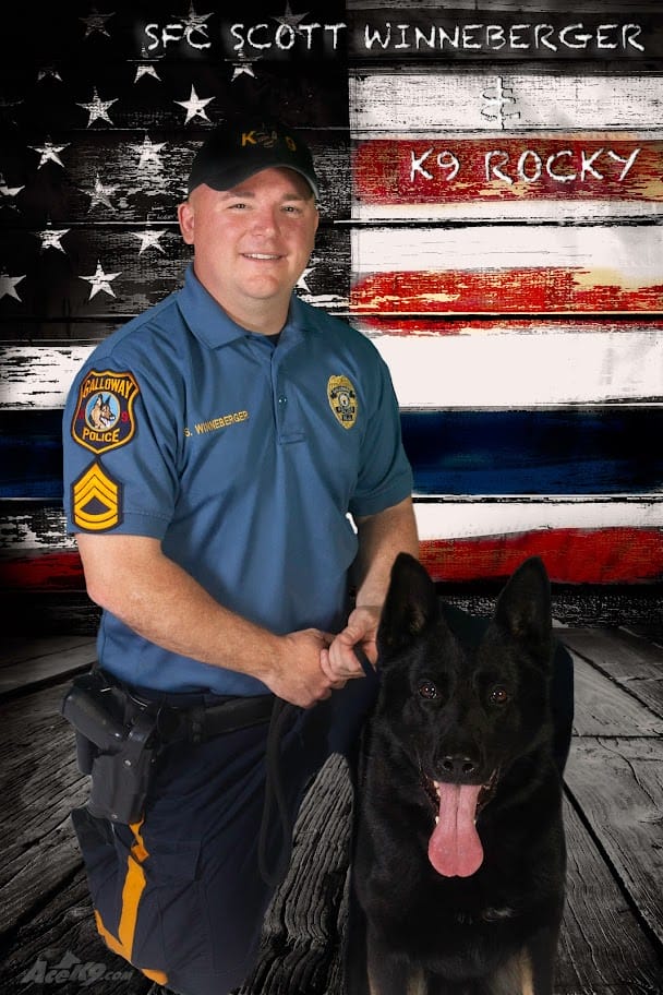 K9 Rocky joined the Galloway Township Police Department in August of 2013 and worked the street for 9 years. K9 Rocky was a certified in patrol work and narcotic detection and finished his career with over 1,000 deployments resulting in a large number of arrests and seizures of illegal narcotics. K9 Rocky was an outstanding tracker, locating many suspects and missing persons. K9 Rocky was most well know for his K9 Demos. He loved performing in front of the crowds of children, especially showing off his obedience and agility. K9 Rocky conducted over 500 K9 demos in his career. In retirement, K9 Rocky has enjoyed hanging out with the family and enjoying his large yard. K9 Rocky enjoys barking at everything that moves in his retirement and ensures that the whole neighborhood knows he’s awake. K9 Rocky also loves car rides, it makes him feel like he’s back working.