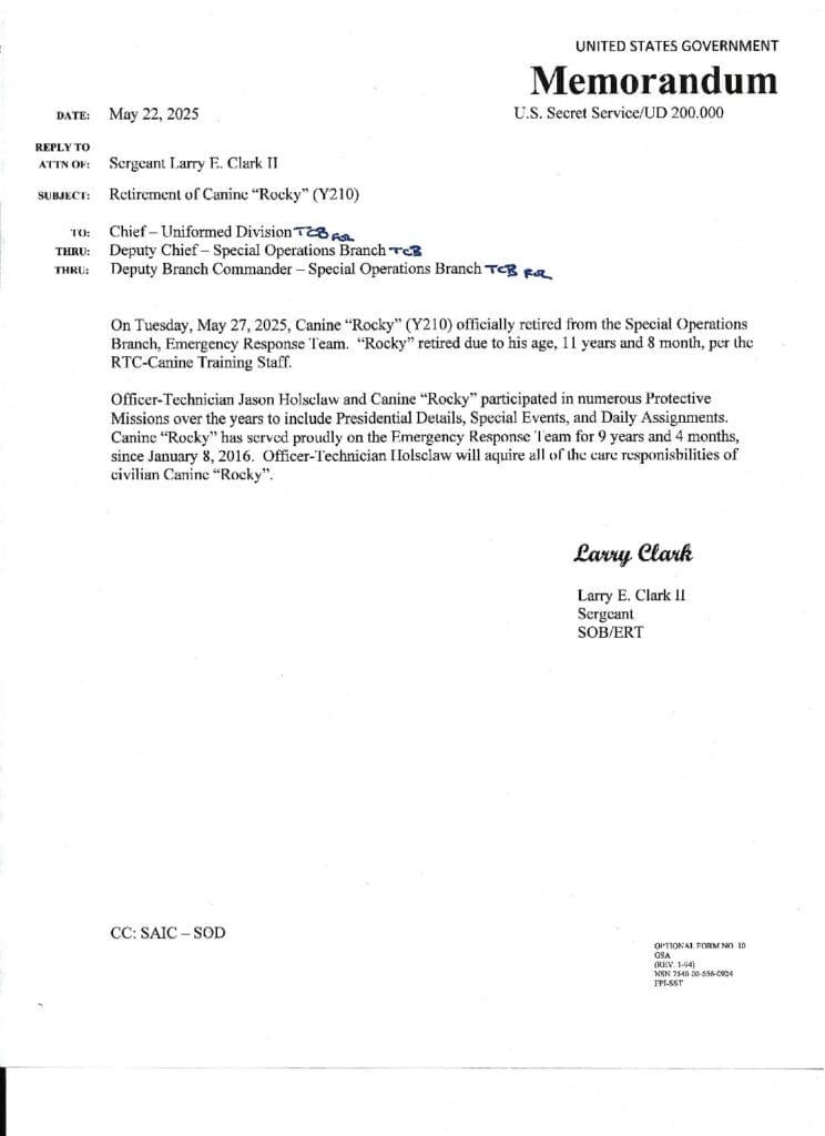 Rocky protected 3 different Presidents.