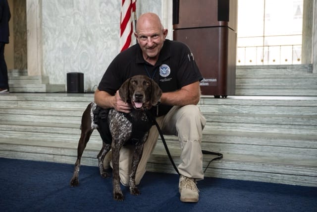 Rocky after school at Lackland/CTC begin work at IAD Dulles in early 2020. He worked there until Oct of 2024. During his tenure Rocky worked on TDY in Indianapolis at the Indy 500 in 2021, and returned to assist at IND in March 2022 for a month. Rocky assisted with Operation Allies Welcome in 2022. He also conducted a demonstration in June 2024 for the U.S. Congress at the Rayburn building. Also spending 3 weeks at PIT in Pittsburgh in July 2024. Rocky was perfect during his 5 years of work, having never failed any assessment or evaluation. Rocky, as of June 2025, has now been to the Outer Banks and the ocean. His favorite snacks are ice cream and his milk bones. He loves walks or chasing squirrels in his large fenced back yard, or going to his 500 acre mountain retreat.