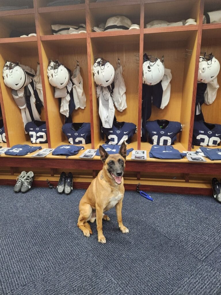 Rudie was imported from Holland purchased as a single purpose explosive detection K9 for Penn State University. K9 Rudie was certified through the PA State Police in 2013 and worked on Penn State University campus’ and through out PA. Rudie loves to run everywhere he goes even now at nearly 11 years old. Rudie enjoys getting into trouble on his 10 acre farm. Rudie loves his Kong but fetch has to be limited because he can’t do anything at less than 110%.