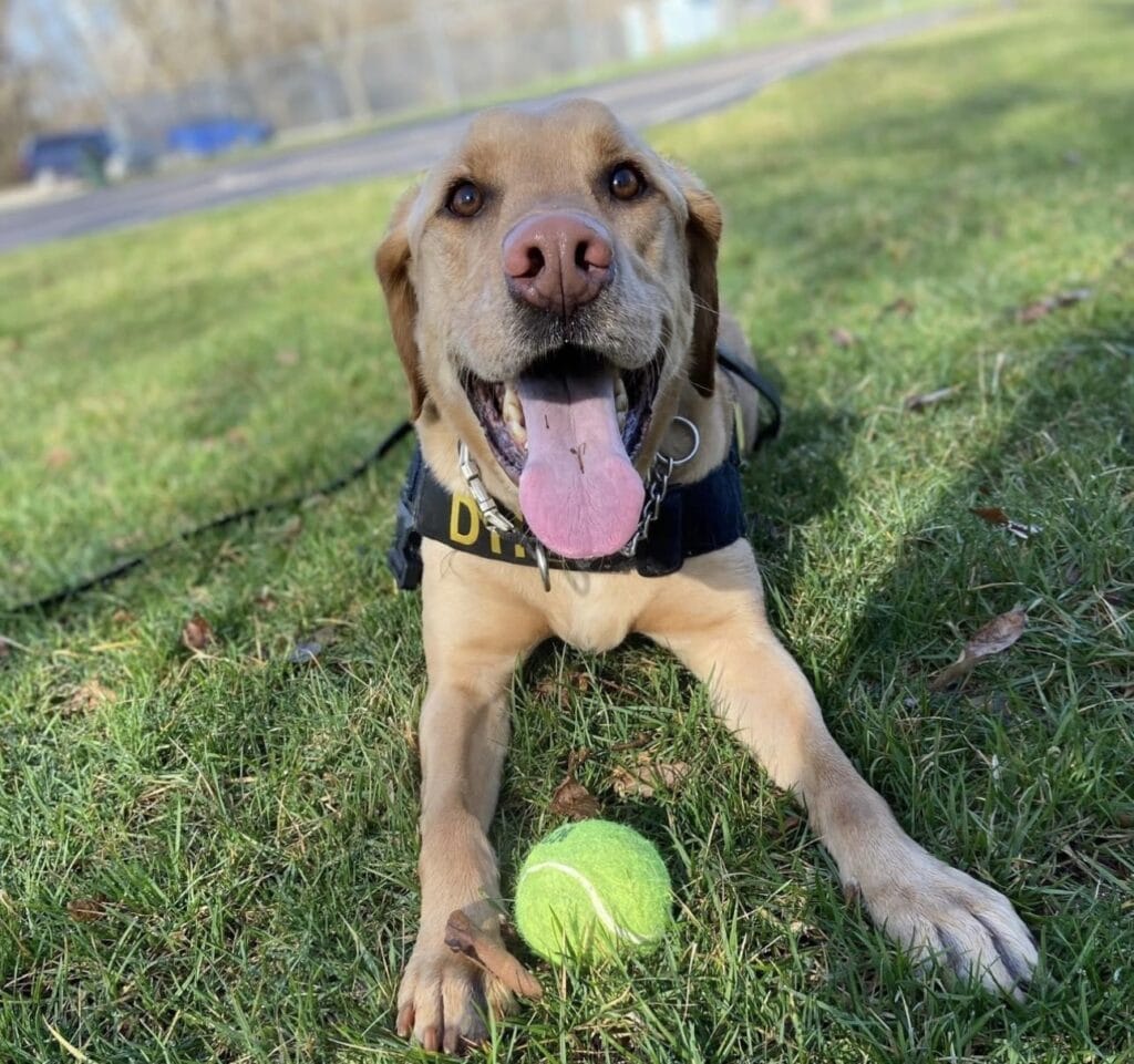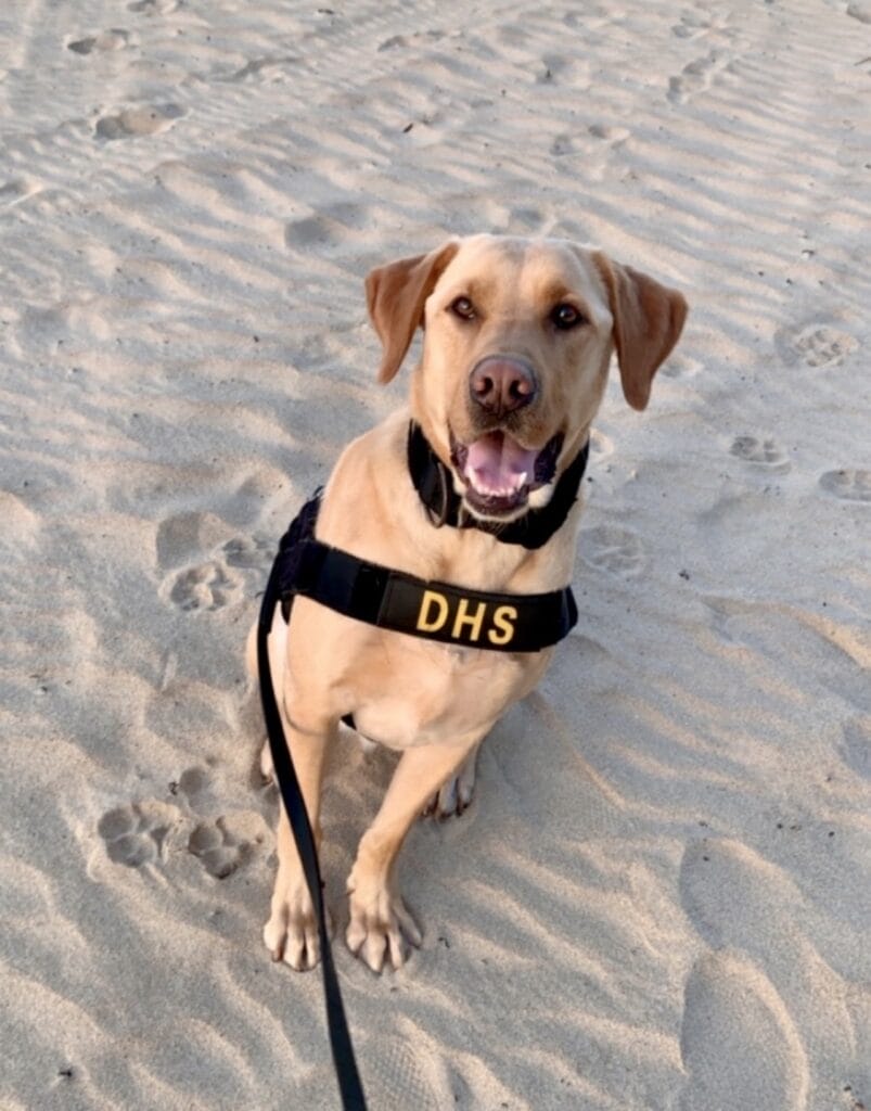 Shadow-Shaw is a ten year old yellow lab who worked as a TSA Canine from 2017 to 2024. Shadow-Shaw started out as a passenger-screening/explosives detection canine at Luis Munoz Marin International Airport in San Juan, Puerto Rico. After three years of service, Shadow transferred with his handler to John Glenn International Airport in Columbus, Ohio to start up their canine program. Shadow-Shaw was recognized as one of the canine’s featured on Columbus News Station WSYX for working the Superbowl in Phoenix, Arizona in 2023, as well as being featured as one of the top 10 TSA Cutest Canine’s and Mr. September in the TSA Canine Calendar in 2023. Shadow-Shaw loved traveling to help out at other airports, and has worked at Pittsburg International Airport, Cleveland Hopkins International Airport, Ronald Reagan Washington National Airport, and Phoenix Sky Harbor International Airport. Shadow-Shaw’s favorite toys are Kong squeaky tennis balls and stuffed Lamb Chop toys, and absolutely loves Milk Bone dog treats! In his downtime, Shadow-Shaw loves hanging out with his brother K9 Max, going for walks and playing hide and seek with his toy, and spending time with his new baby sister Jin-Ju.
