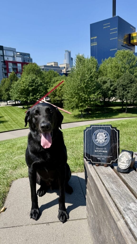 K9 Storm served as a single-purpose narcotics detection K9 assigned to the Anoka-Hennepin Narcotics & Violent Crimes Task Force. He specialized in covert and premise sniffs and was a reliable partner on a wide range of investigations, using his drive and focus to locate narcotics in all kinds of environments. Over the course of his career, Storm trained around the country, including trips to New Orleans and Las Vegas, where he seemed to enjoy his first-class upgrades just as much as the work. When he wasn’t out on a sniff, Storm was usually making his rounds through the office looking for pets and snacks, or napping under whichever desk he decided was his for the day. His favorite reward was his ball, followed closely by anything he could eat. With a great nose and an even better personality, Storm was a valued partner and a constant presence on the task force.