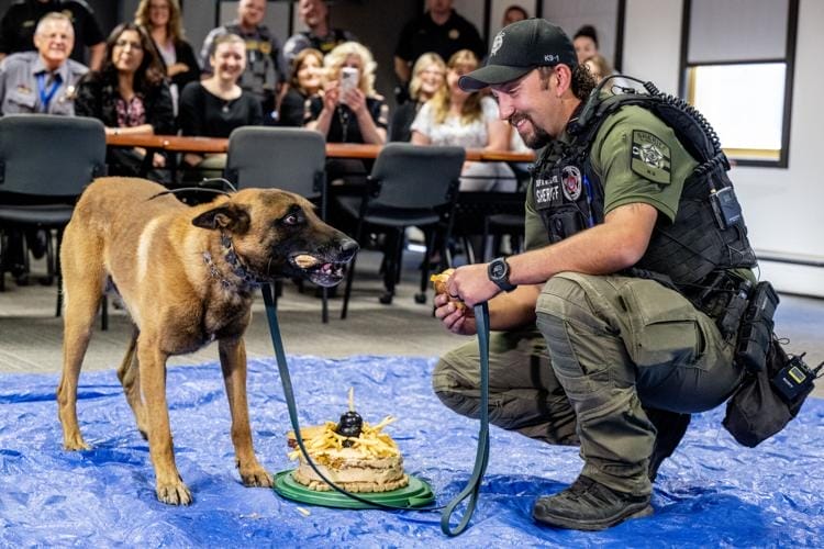 He served without hesitation for six years. During his time served he was deployed 1240 times, had 9 criminal apprehensions, 130 give ups, 370 SWAT Deployments. He recorded over 1.7 million dollars worth of narcotics seizures to include 22 pounds of cocaine during a traffic stop, 16 pounds of Methamphetamine during a traffic stop, 12 pounds of Black Tar heroin during a traffic stop, and several 3 pound finds of various narcotics on traffic stops and search warrants, along with hundreds of other user amounts. Taz worked along side several local agencies to include Fountain Police Department and RRT, Colorado Springs Police Department, Calhan Police Department, Monument Police Department, Manitou Springs Police Department, FBI, DEA, ATF, Metro VNI, Fort Carson CID, Air Force Academy as well a Presidential Detail. Taz was one of the most successful and influential K9s to work for the Sheriff’s Office to date.