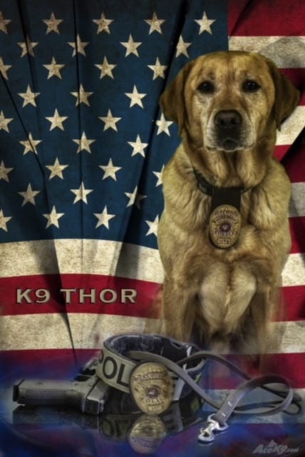 Thor was purchased from susquehanna services dogs at age 2 by the Federal Government. He was trained for explosive detection and traveled the world. He spent time in Afghanistan and Iraq and even did a short trip to KSA (Kingdom of Saudi Arabia).