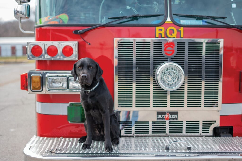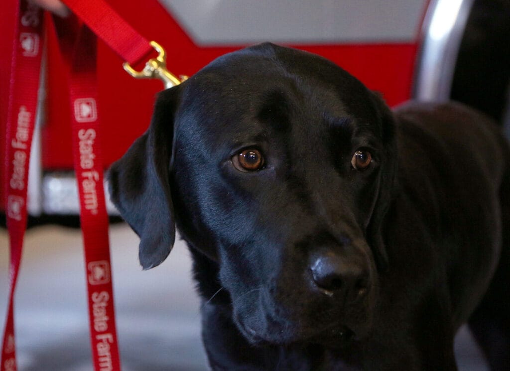 All of the dogs chosen for the State Farm Arson Dog Program are Labrador retrievers or Lab mixes that are acquired through a cooperative program with guide dog and disability assistance canine organizations (as well as through local animal shelters and humane societies). As a result of their high energy and social exuberance, these dogs are career-changed from disability assistance service to crime fighting.