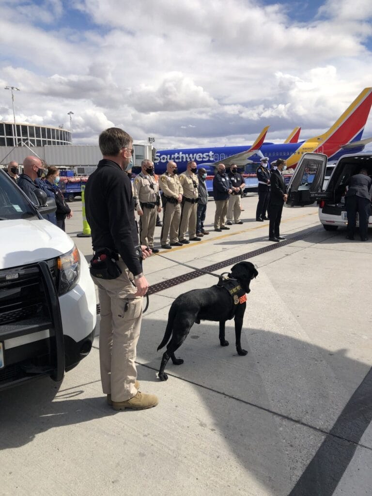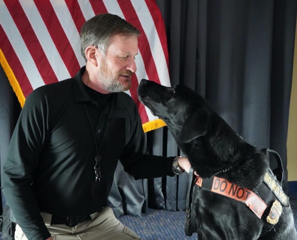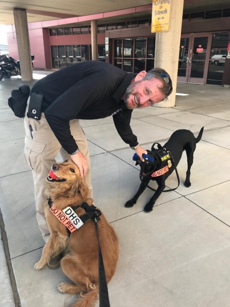 He was born in Europe, trained at Lackland AFB in Texas. We were teamed up in January 2014 and he was one of four canines to start the program in Las Vegas at LAS. He supported other airports such as SEA, JFK, SAN and DEN. By the time we transferred in 2021 he was the last original canine at LAS and the last one still working period. Since arriving in Columbus, OH he became certified and assisted in starting operation here before he unfortunately had to retired due to cancer. Except for a few rough spots before and after his surgery. He has been happy and active ready willing and able to play at a moments notice.