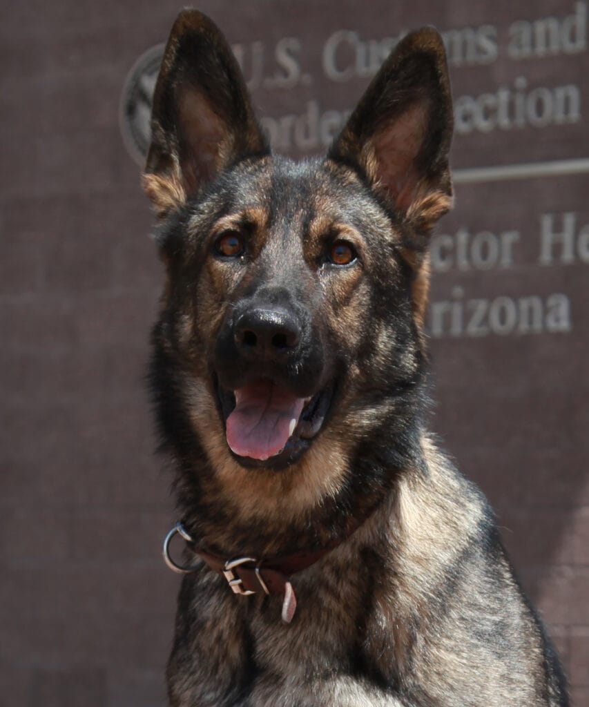 K9 VITA retired from the United States Border Patrol in November of 2018. VITA spent the majority of her career at the Soniota, Arizona Border Patrol Station. Most of her duties consisted of tracking narcotic smugglers in the mountains of southern Arizona between Nogales, Arizona and Naco, Arizona. Vita’s seizure statistics ended with 22,882 lbs of marijuana, 2 lbs of Methamphetamine, personal use amounts of cocaine and heroin and 506 human apprehensions. These seizures led to multiple convictions of drug mules. VITA’s handler is a K9 trainer for the Border Patrol which allowed her to travel Texas and Virginia for training purposes on multiple occasions. VITA loved the snow! Probably because she needed a break from the summers in AZ. VITA is enjoying the retired life with seven other dogs and three horses on a little ranch in Arizona. Her and her replacement are best of friends.